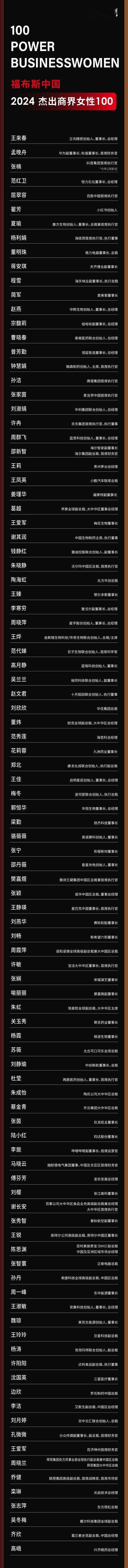 华为副董事长、轮值董事长,首席财务官孟晚舟;娃哈哈副董事长、总经理宗馥莉;
