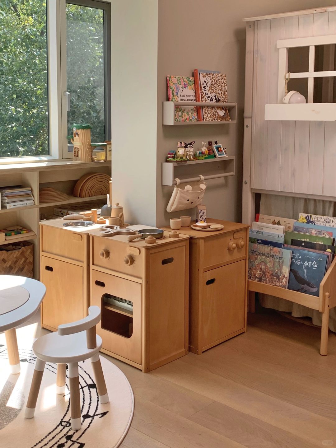 给女儿的房间重新挪了一下布置 太阳能晒到的地板在变色 只能这样来拉近色差了