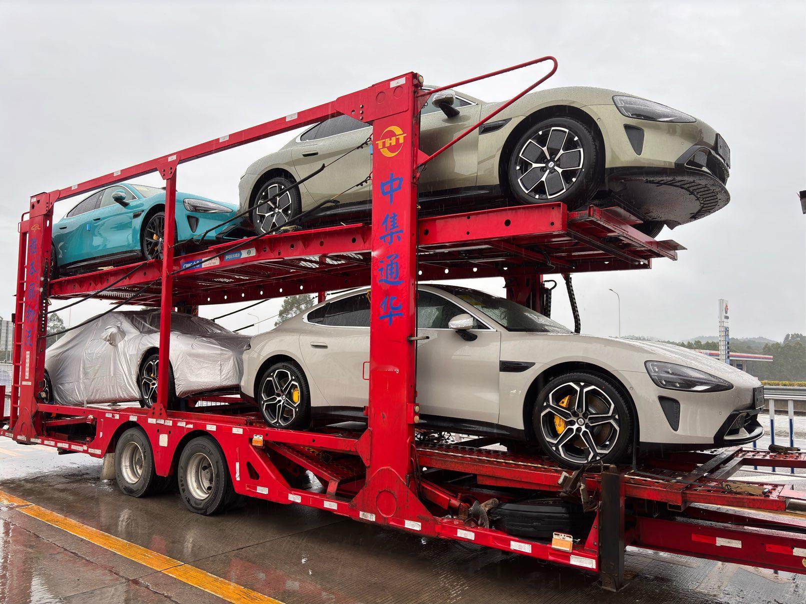 有网友拍到了小米SU7在运输车上的照片,看来新车正在陆续发往全国小米汽车的经销处了,网传3月28号左右的月底发布会,看起来将近。