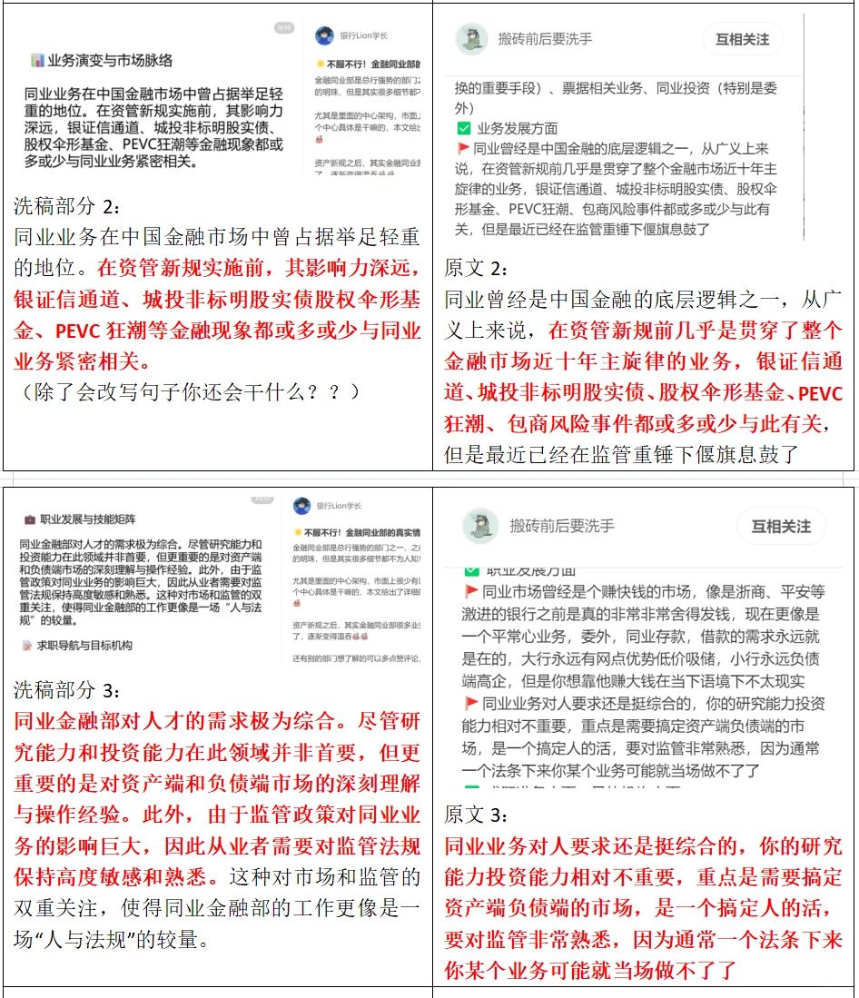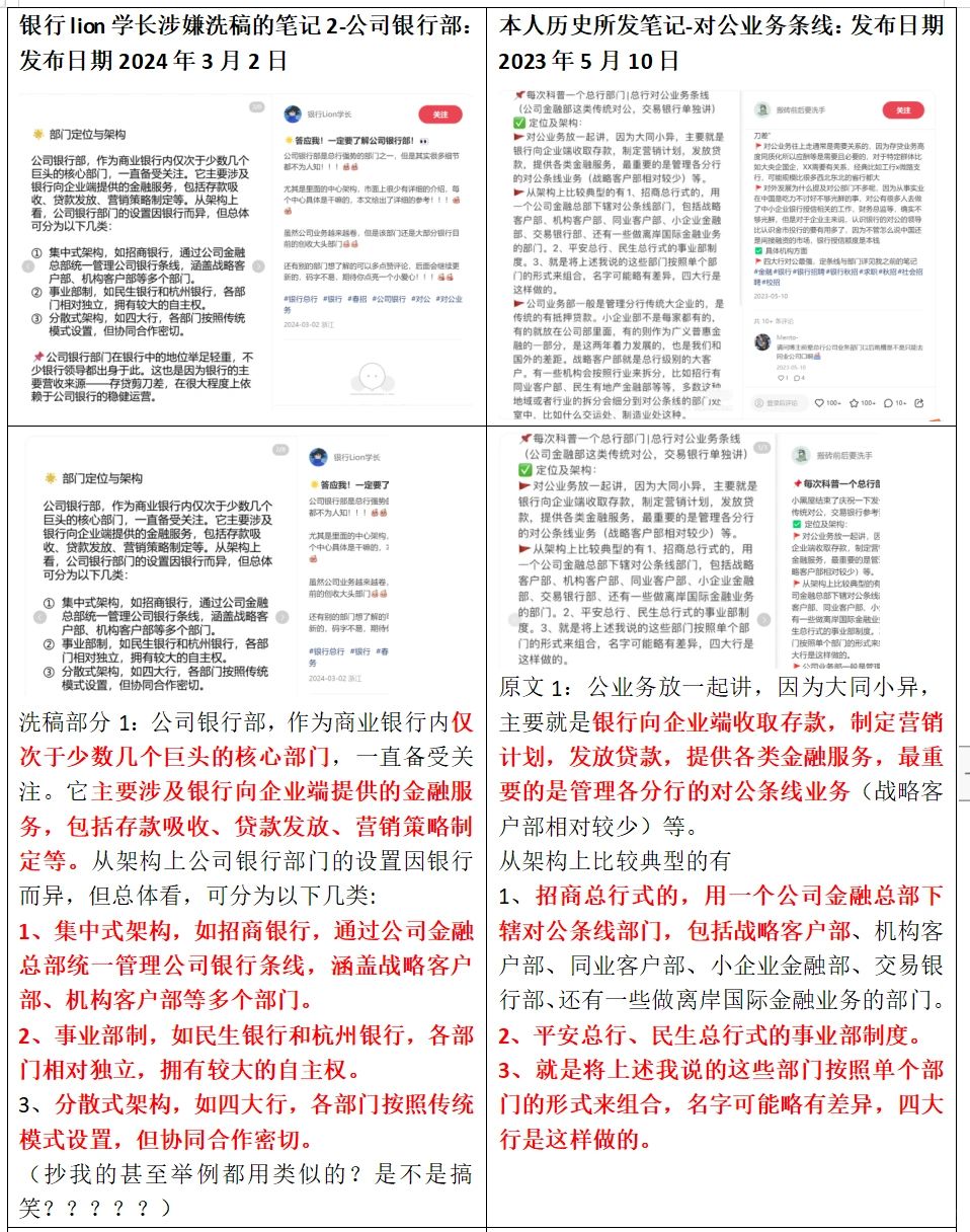 近日,有粉丝和我说我写的《每次科普一个总行部门》遭到了用户 的洗稿抄袭,主要洗稿抄袭手法表现为调整语序、调整措辞和前后顺序等方式。