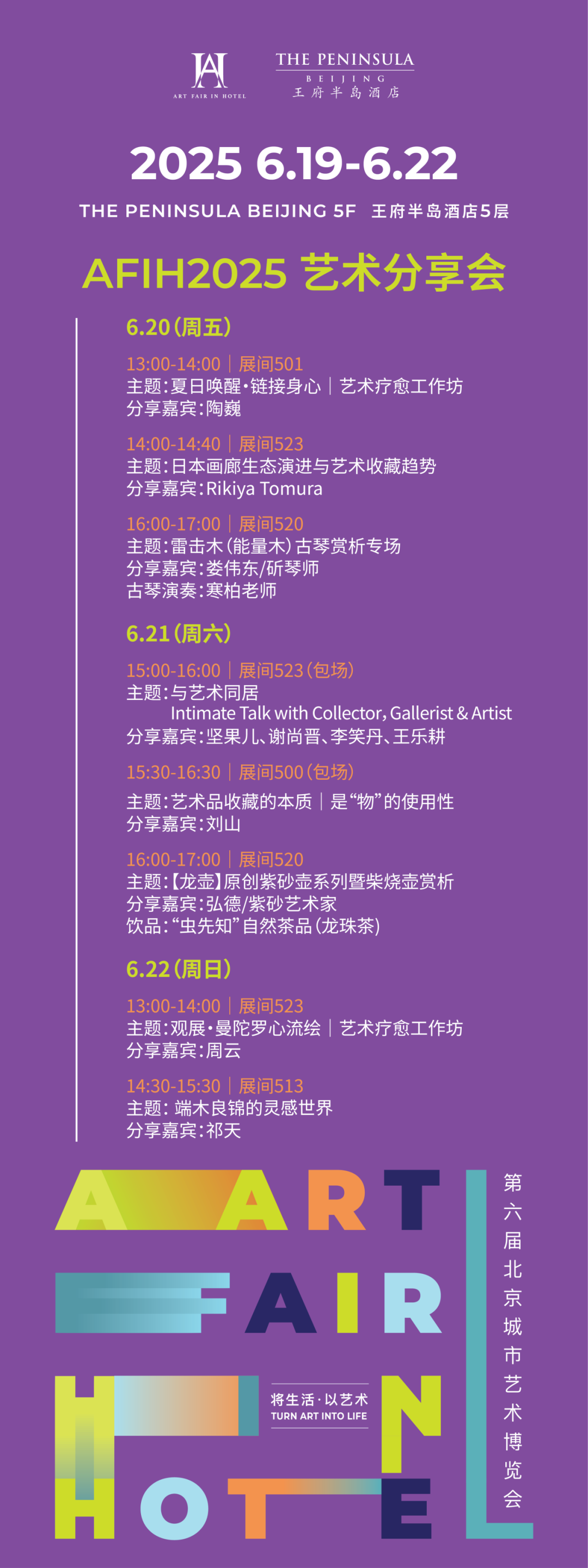 于王府半岛酒店拉开帷幕六月的北京,暑意正浓。历时半年的精心筹备,第六届北京城市艺术博览会AFIH2025在这个热情似火的季节如约绽放。今晚,王府半岛酒店灯火通明,艺术之光点亮了京城的夏夜。来自各地的藏家与艺术爱好者们齐聚一堂,在“将生活,以艺术”的沉浸空间中,开启了一场充满灵感的夏日艺术之旅。