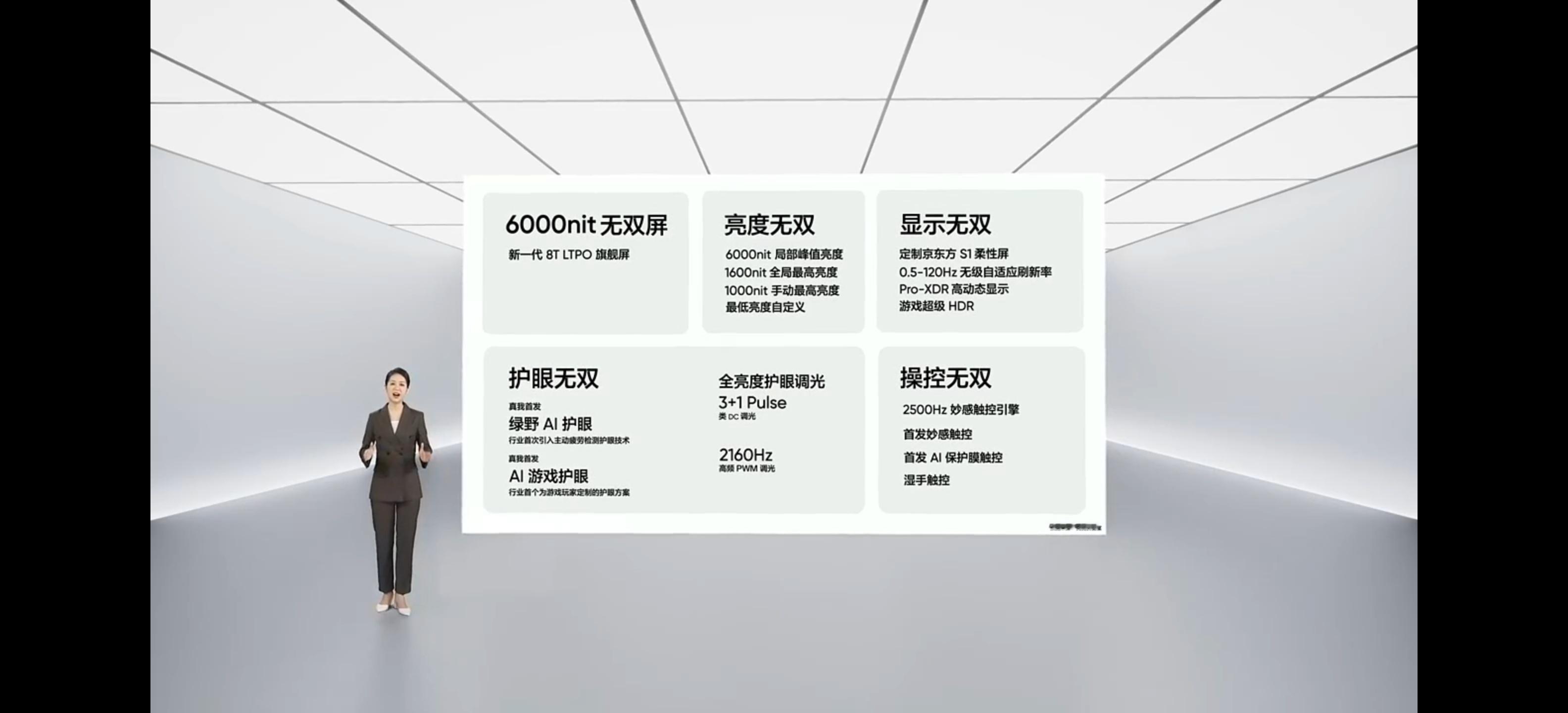 据了解,这是京东方定制S1柔性屏,采用新一代8T LTPO技术,带来了6000nit超高屏幕峰值亮度。