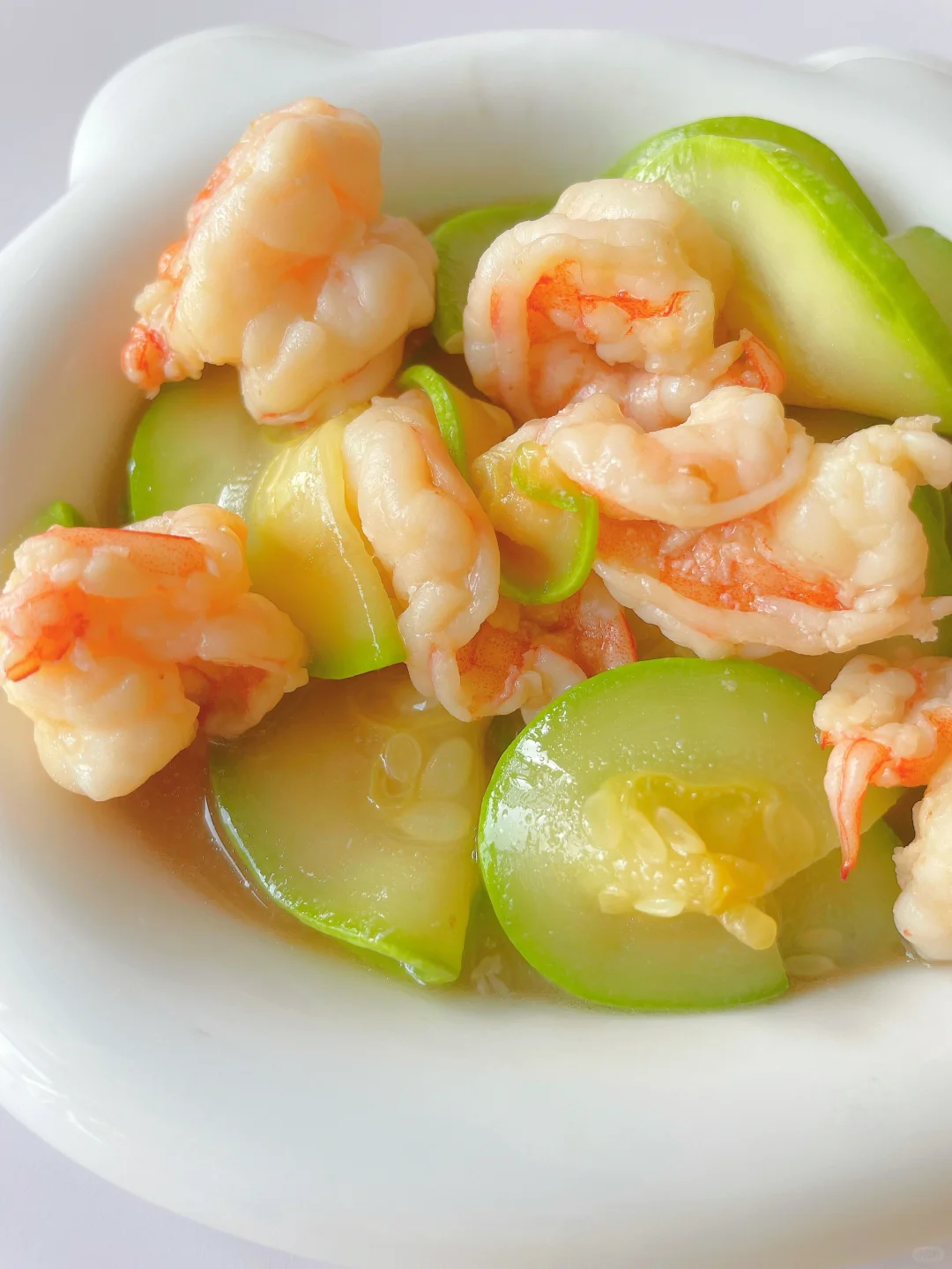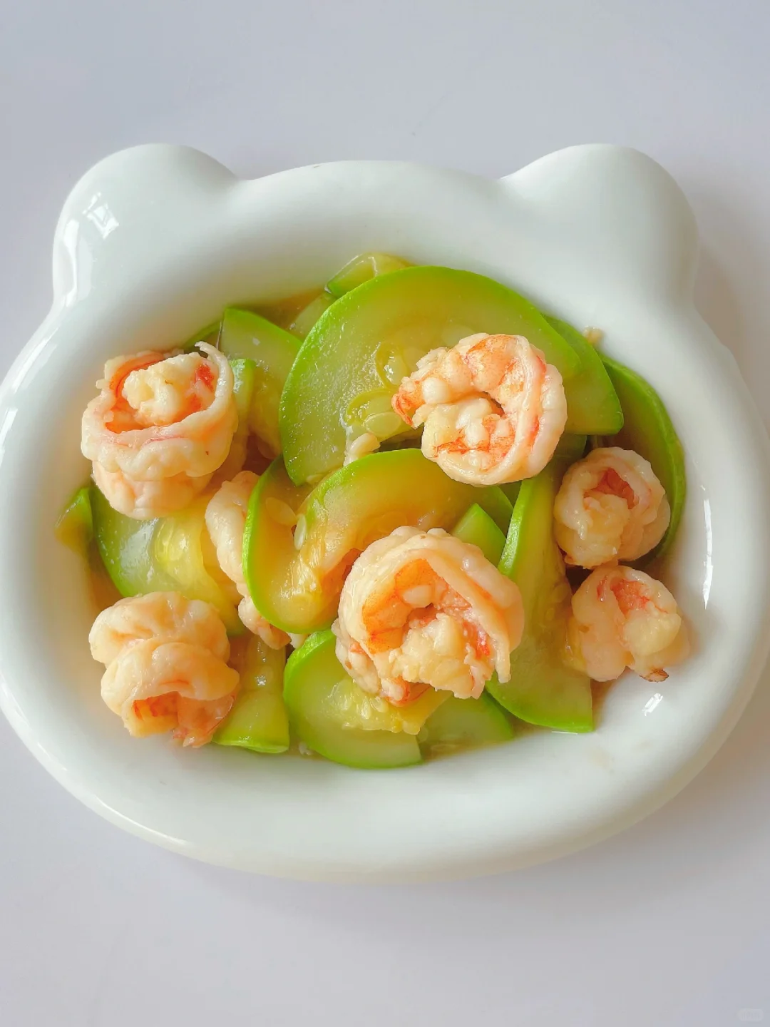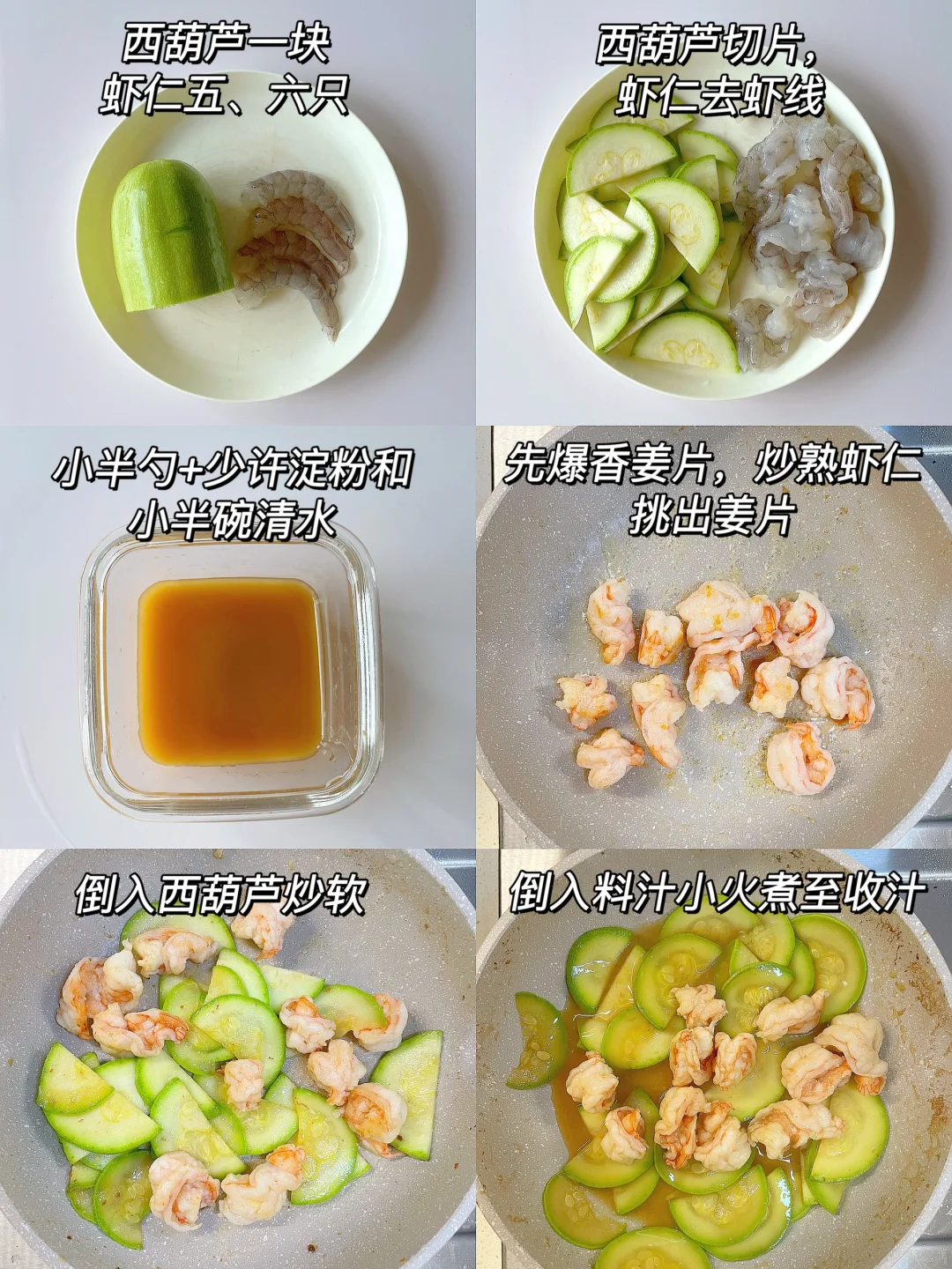 🌈鲜香清爽,让宝宝爱上吃蔬菜和鲜虾~ 🎈准备食材: 1️⃣西葫芦半根,虾仁六只; 🎈制作步骤: 1️⃣西葫芦切片,虾仁去虾线; 2️⃣料汁:小半勺酱油+少许淀粉和清水搅拌均匀; 3️⃣热锅刷油,爆香姜片。倒入虾仁炒熟,挑出两片,再放入西葫芦炒至断生,倒入料汁煮至收汁即可;