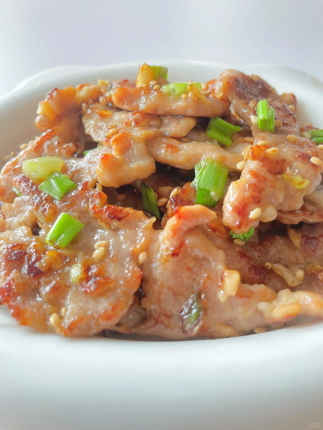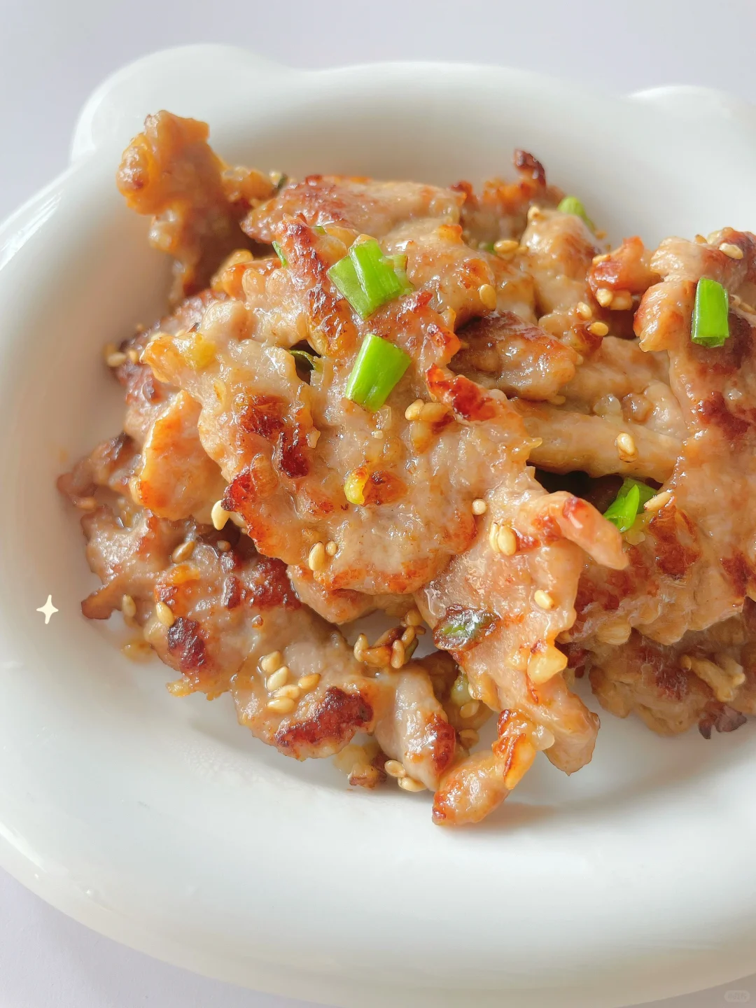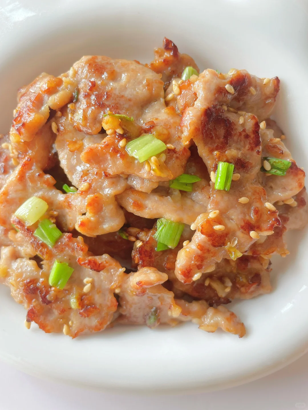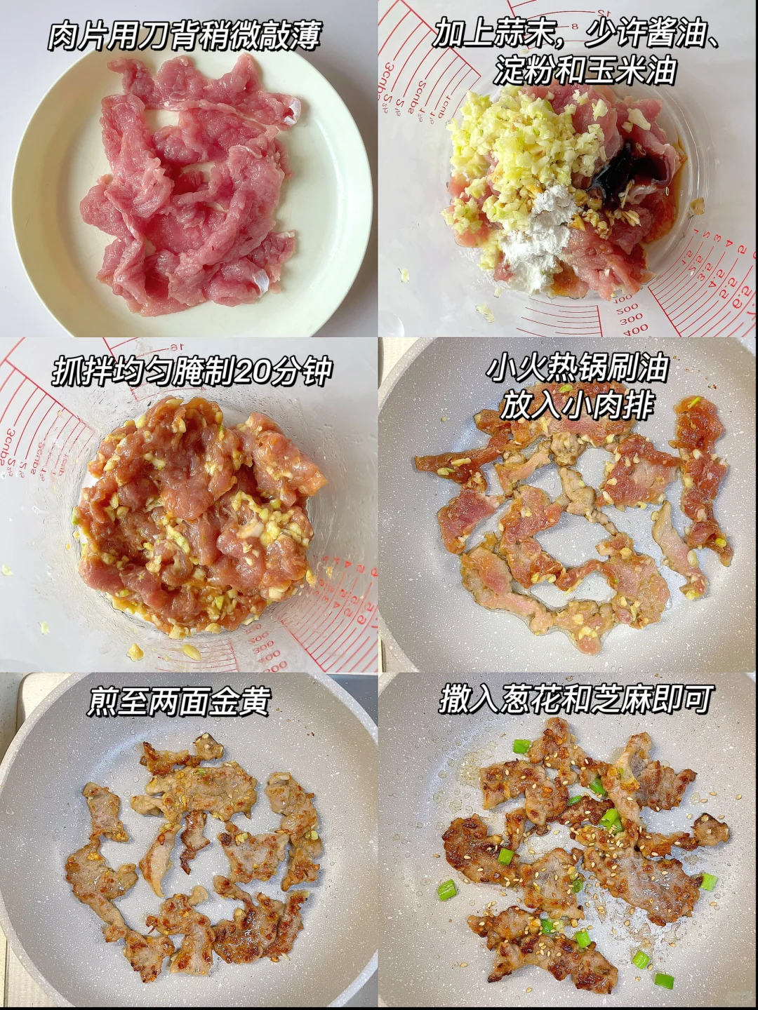 🌈这样做的肉排又香又嫩,而且宝宝容易咀嚼~ 🎈准备食材: 1️⃣猪里脊肉四、五片,大蒜两颗,葱花和芝麻适量; 🎈制作步骤: 1️⃣肉片用刀背轻轻敲薄,加蒜末、少许酱油、淀粉和玉米油抓拌均匀,腌制二十分钟; 2️⃣小火热锅刷油,放入肉片煎至两面金黄熟透,再撒入葱花和芝麻即可~