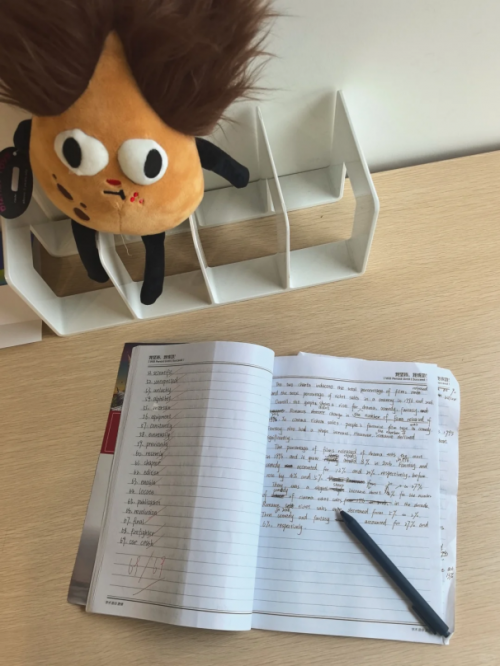 这让我停止了盲目刷题,我知道了自己听力中的方位反应迟钝,阅读里匹配标题的逻辑混乱,写作数据描述的贫乏。还没完,知道病在哪了,下一步就是开药方。给我制定了具体到每周每天的学习计划,包括连假期的时间都会提前问询我有无其他安排,没有的话就给我把计划安排的满一点。