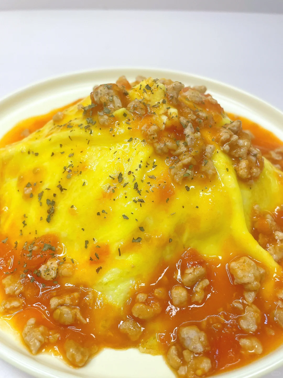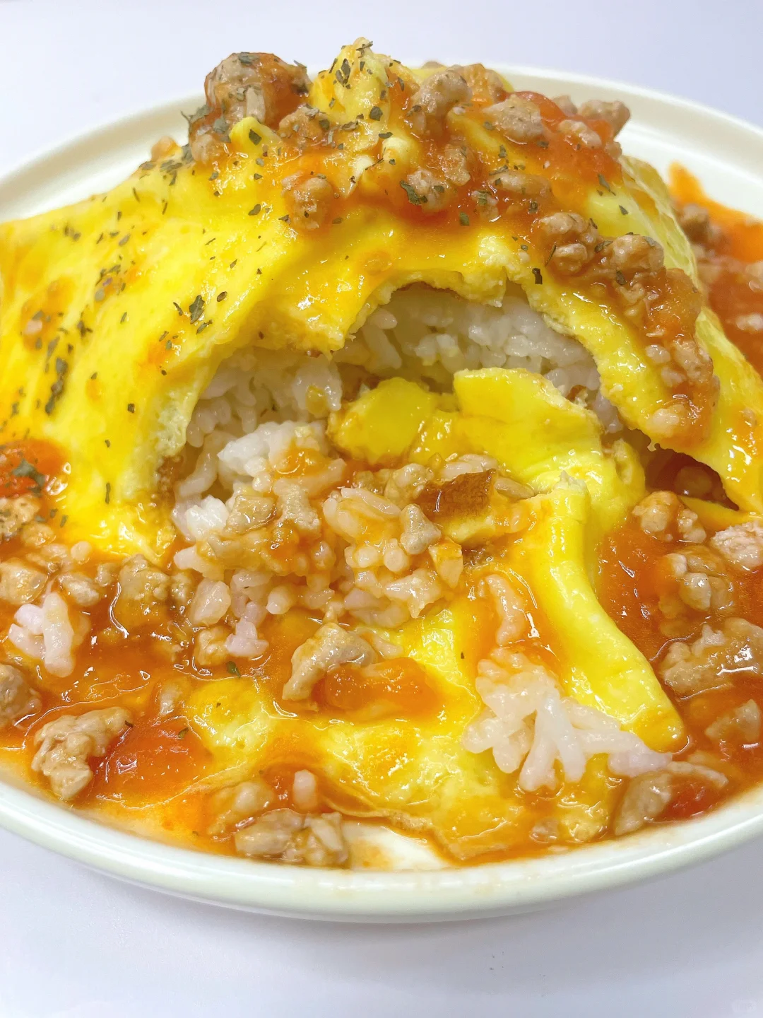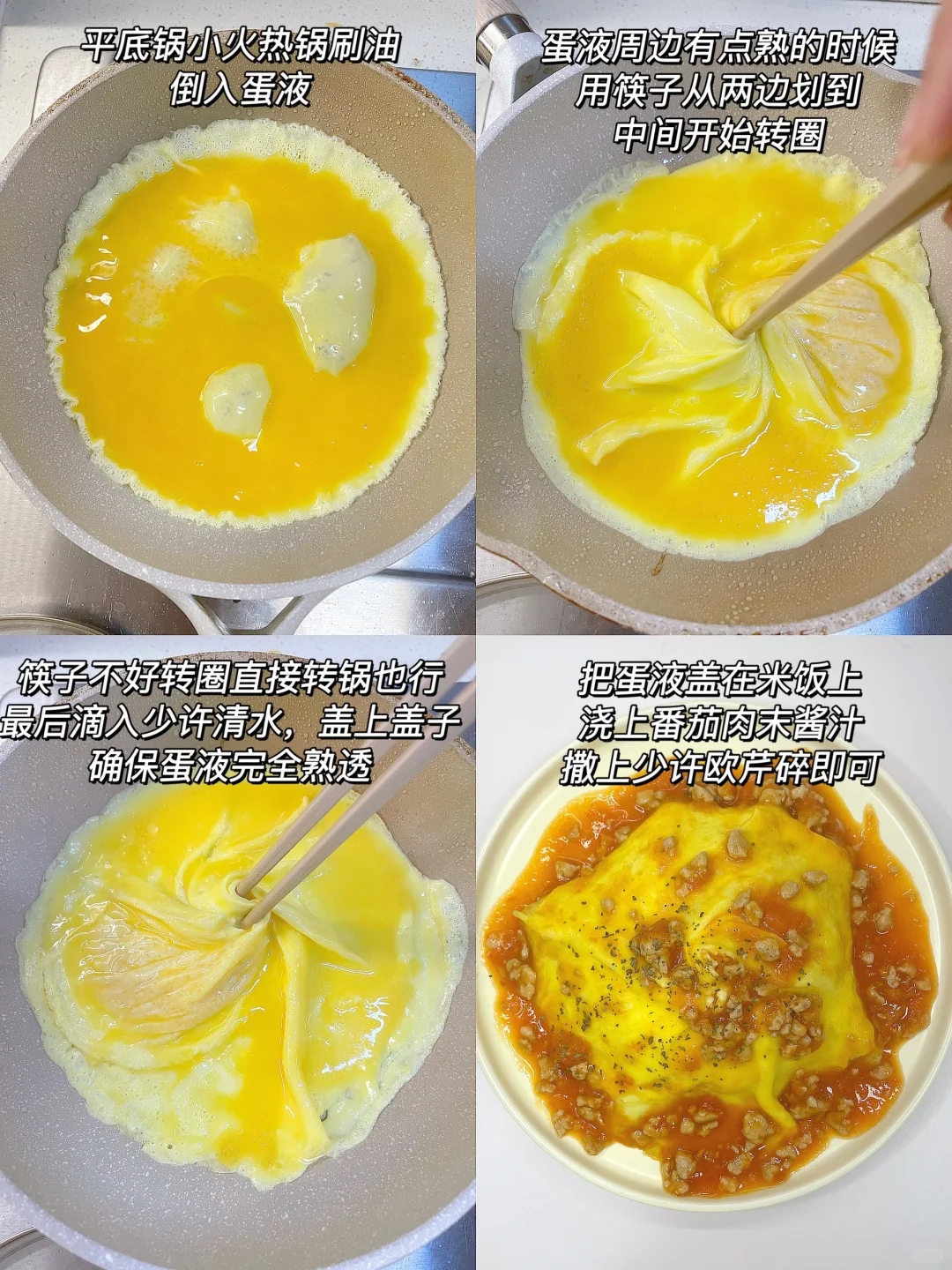 🎈把蛋皮盖在米饭上,再浇上番茄肉酱,撒入少许欧芹碎即可~