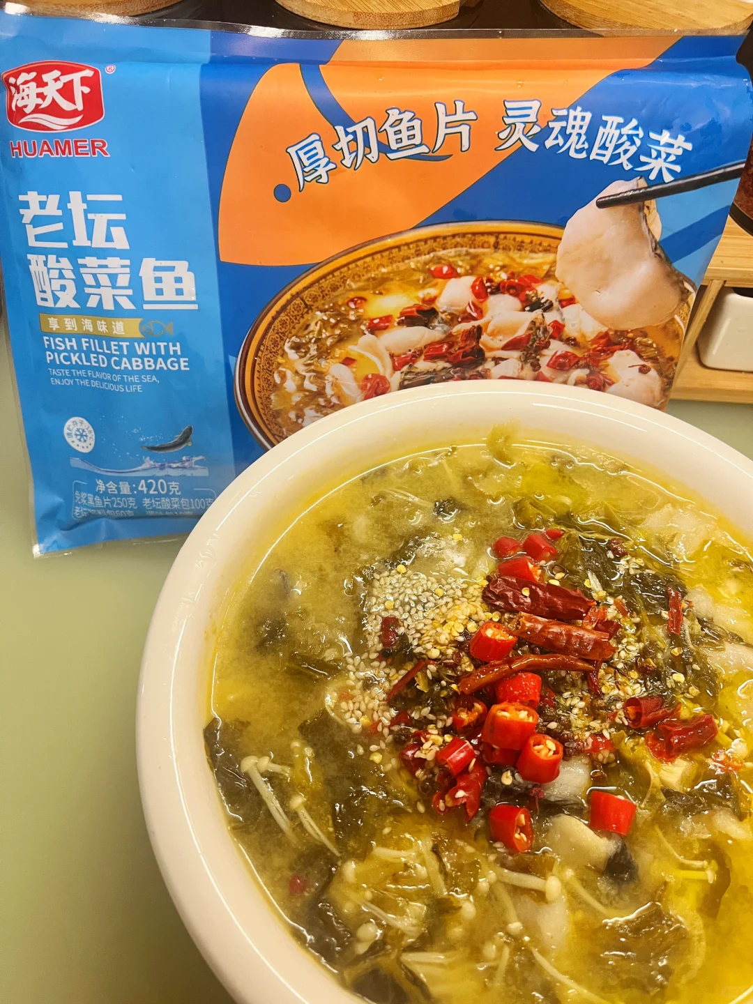 10分钟厨房小白秒变大厨就做酸菜鱼[色色R][色色R] 真的巨巨巨巨下饭太好吃了![哇R][哇R] 酸酸辣辣的根本停不下来[赞R][赞R] 海天下老坛酸菜鱼真的太方便了吧[派对R][派对R] 黑鱼鱼片肉嫩刺少肥美厚实,鱼香浓郁,解冻方便直接烧,小白秒变大厨神,料理包都准备好了!!!