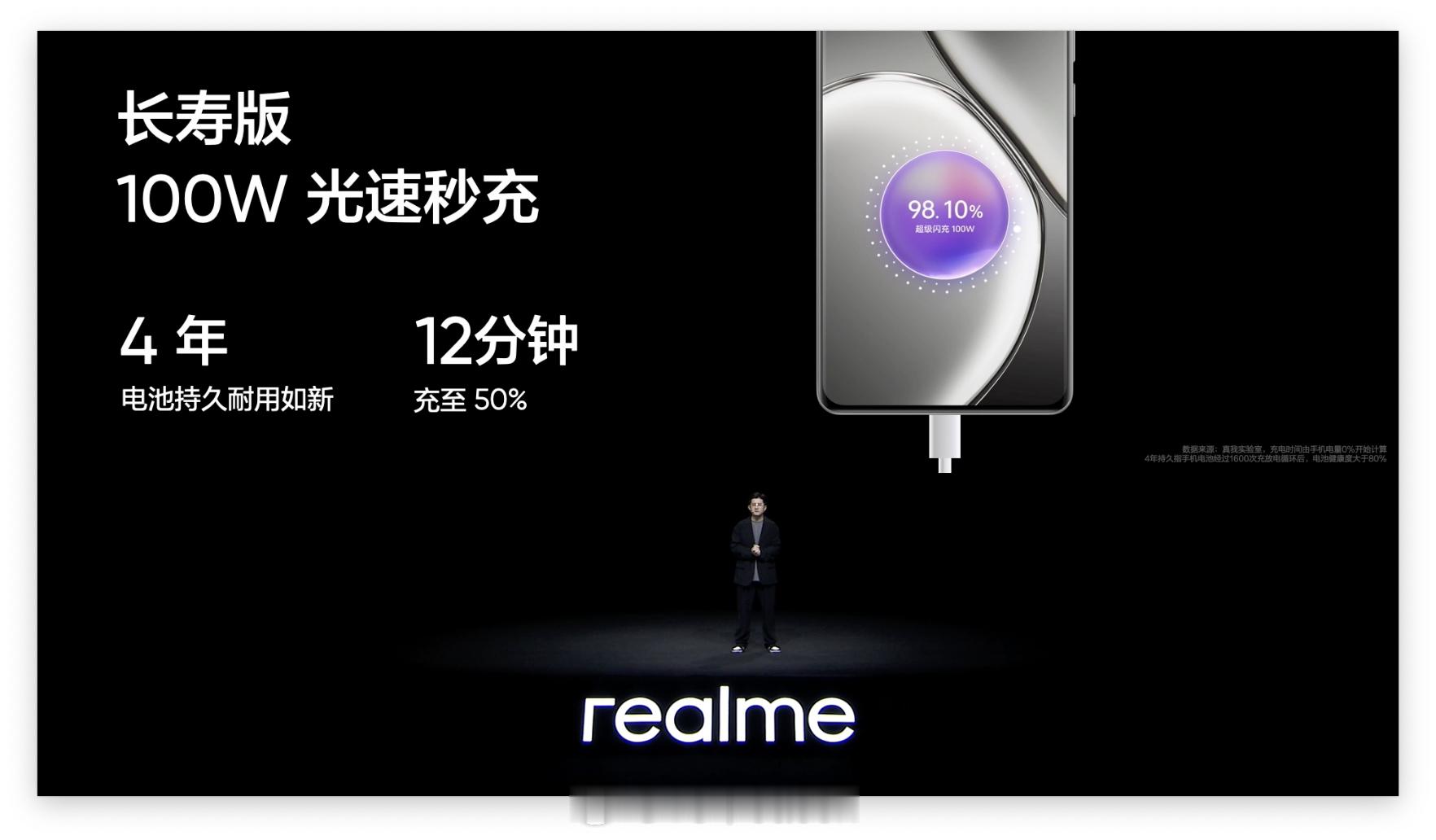 长寿版 100W 光速秒充也配备了,12 分钟充至 50%;一天一充的话 4 年也不会有电池衰减。