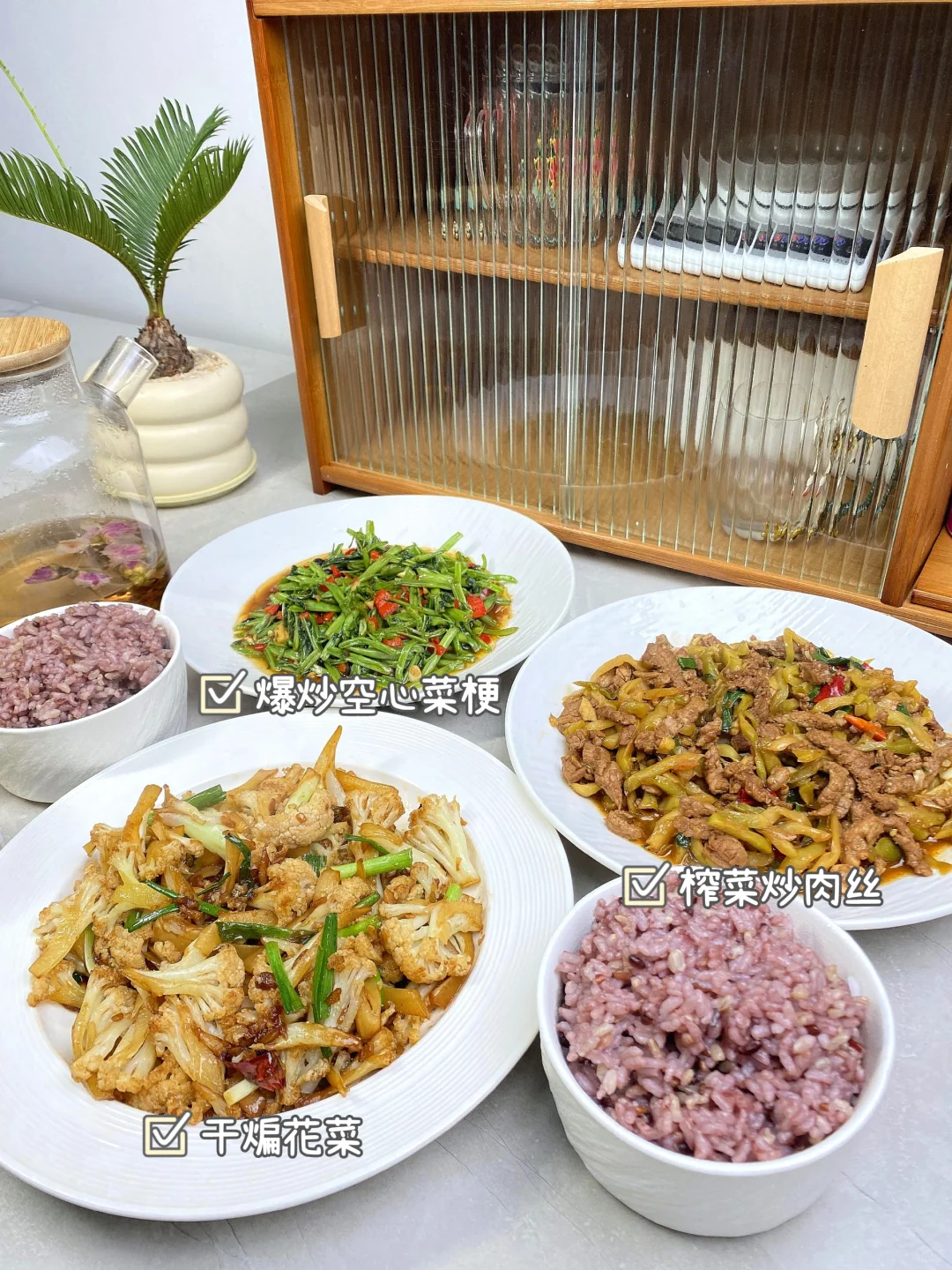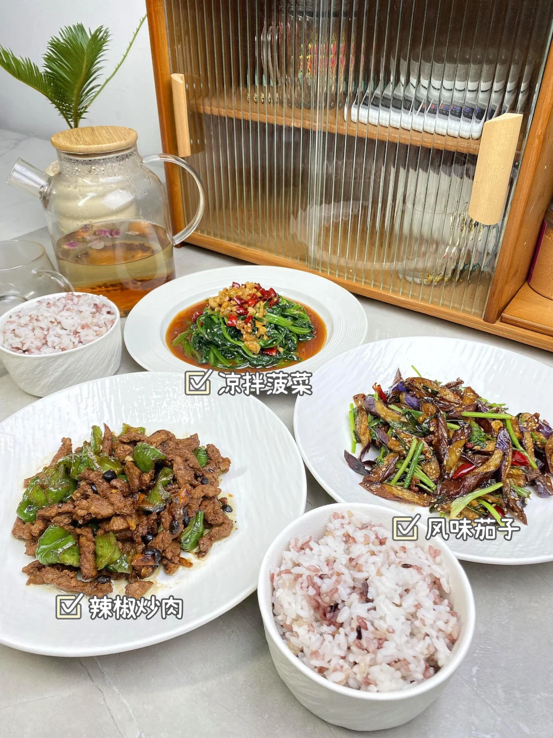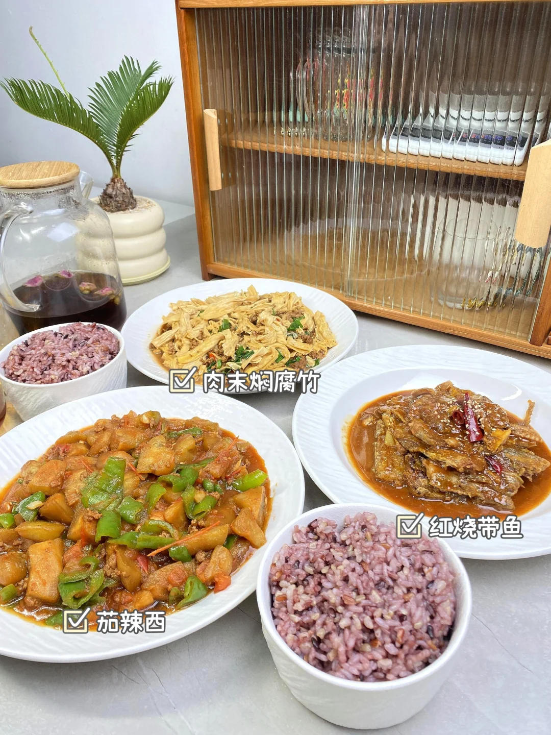 今天晚餐长这样 两人一周七天不重样下饭家常菜 分享给每天不知道吃什么的小伙伴 具体做法主页都有详细的教程介绍 一周菜单合集: 1️⃣茄辣西、肉末焖腐竹、红烧带鱼 2️⃣辣椒炒肉、风味茄子、凉拌菠菜 3️⃣干煸花菜、爆炒空心菜梗、榨菜炒肉丝 4️⃣酸菜炒粉条、凉拌黄瓜、蒜子牛肉粒 5️⃣可乐鸡块、凉拌折耳根、千张包肉 6️⃣酸豆角炒肉末、香菜拌皮蛋、小炒包菜 7️⃣白灼虾、香煎里脊、豆豉油麦菜 好好吃饭,认真生活