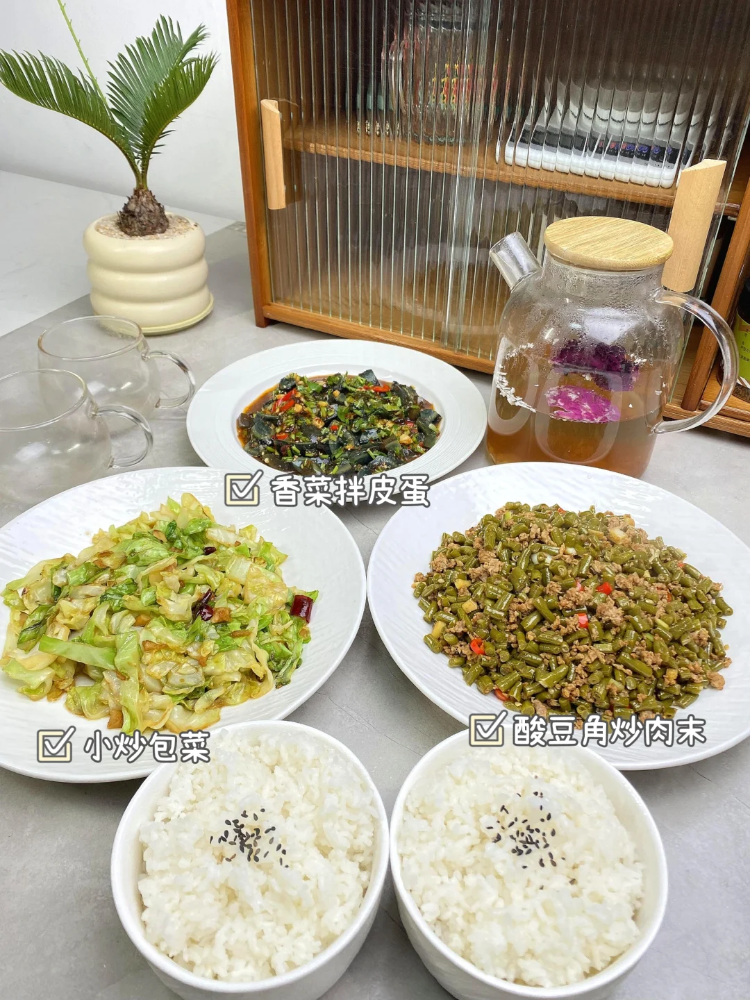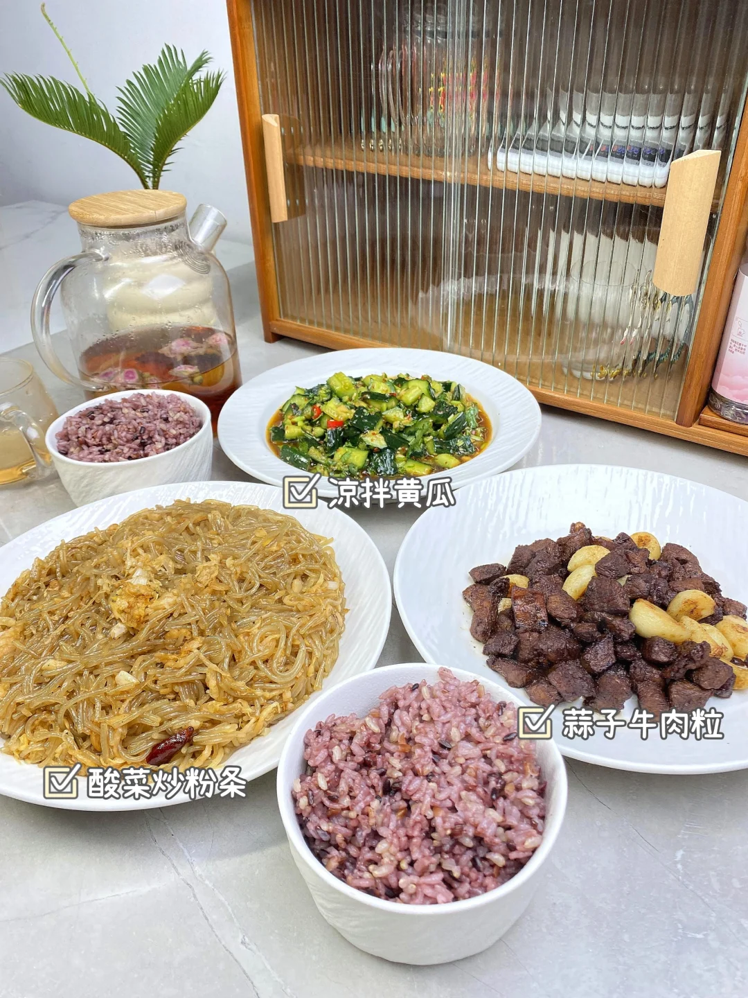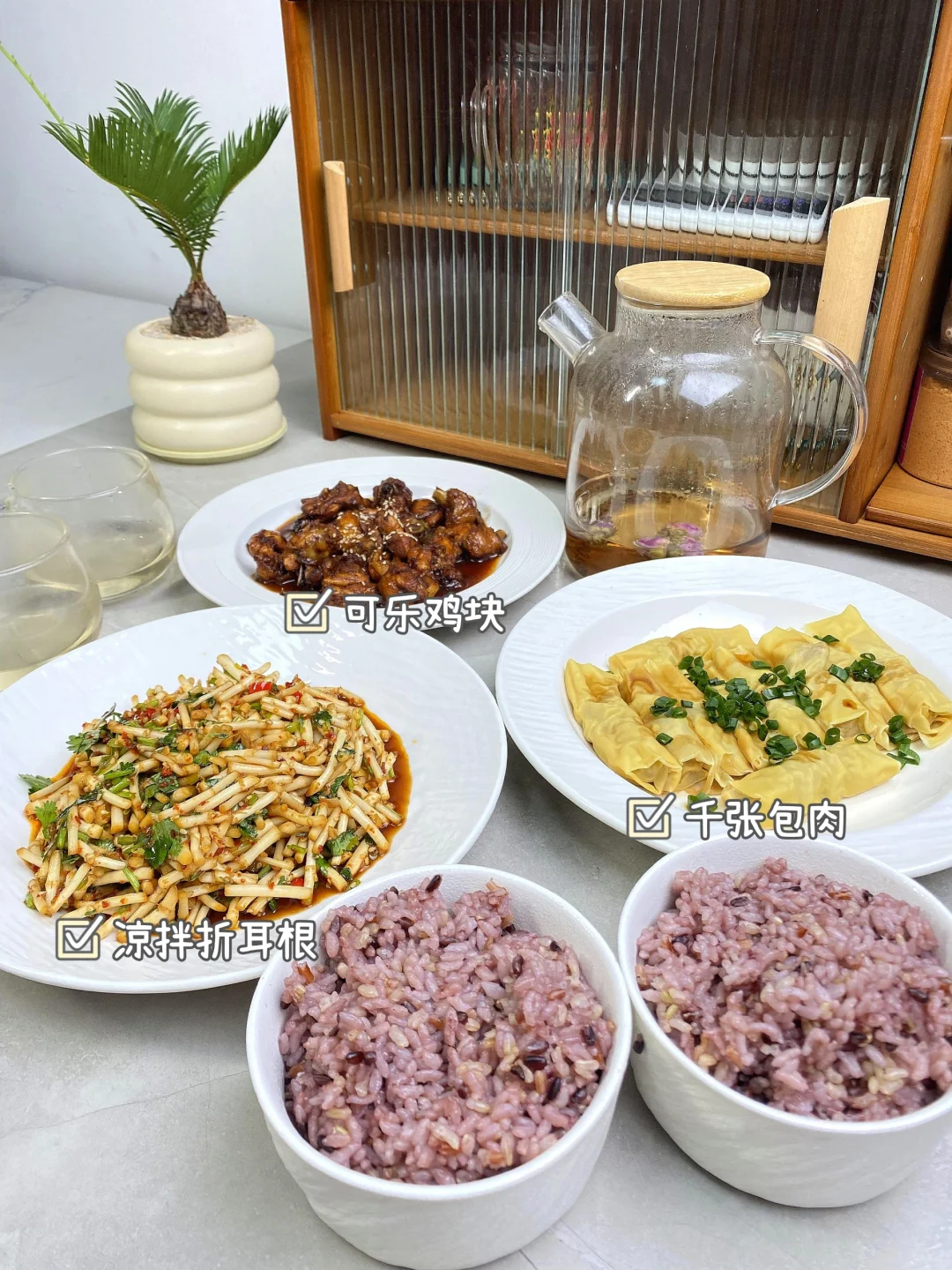 今天晚餐长这样 两人一周七天不重样下饭家常菜 分享给每天不知道吃什么的小伙伴 具体做法主页都有详细的教程介绍 一周菜单合集: 1️⃣茄辣西、肉末焖腐竹、红烧带鱼 2️⃣辣椒炒肉、风味茄子、凉拌菠菜 3️⃣干煸花菜、爆炒空心菜梗、榨菜炒肉丝 4️⃣酸菜炒粉条、凉拌黄瓜、蒜子牛肉粒 5️⃣可乐鸡块、凉拌折耳根、千张包肉 6️⃣酸豆角炒肉末、香菜拌皮蛋、小炒包菜 7️⃣白灼虾、香煎里脊、豆豉油麦菜 好好吃饭,认真生活