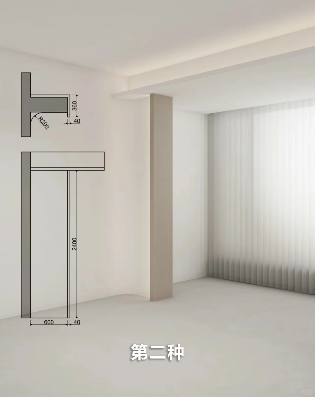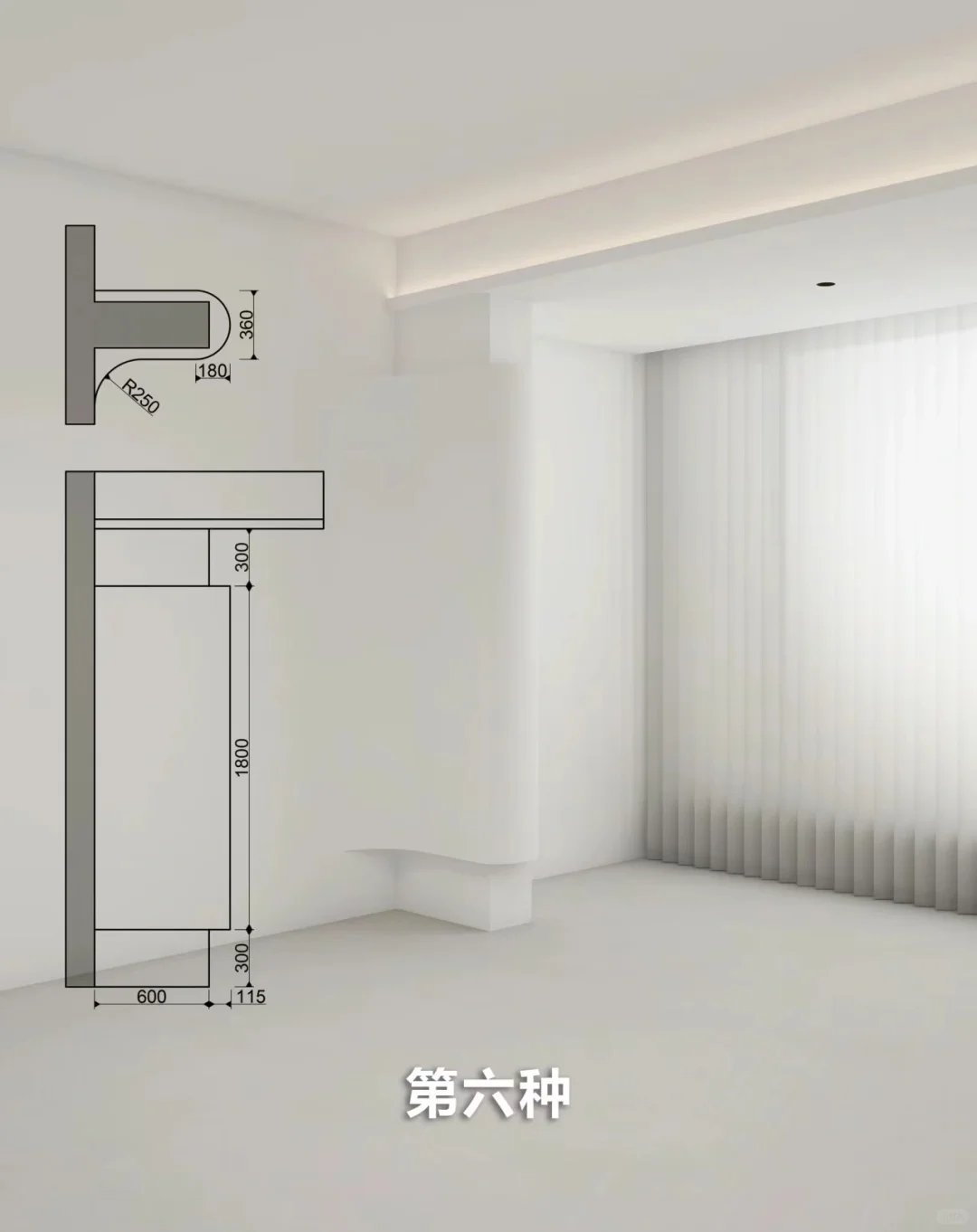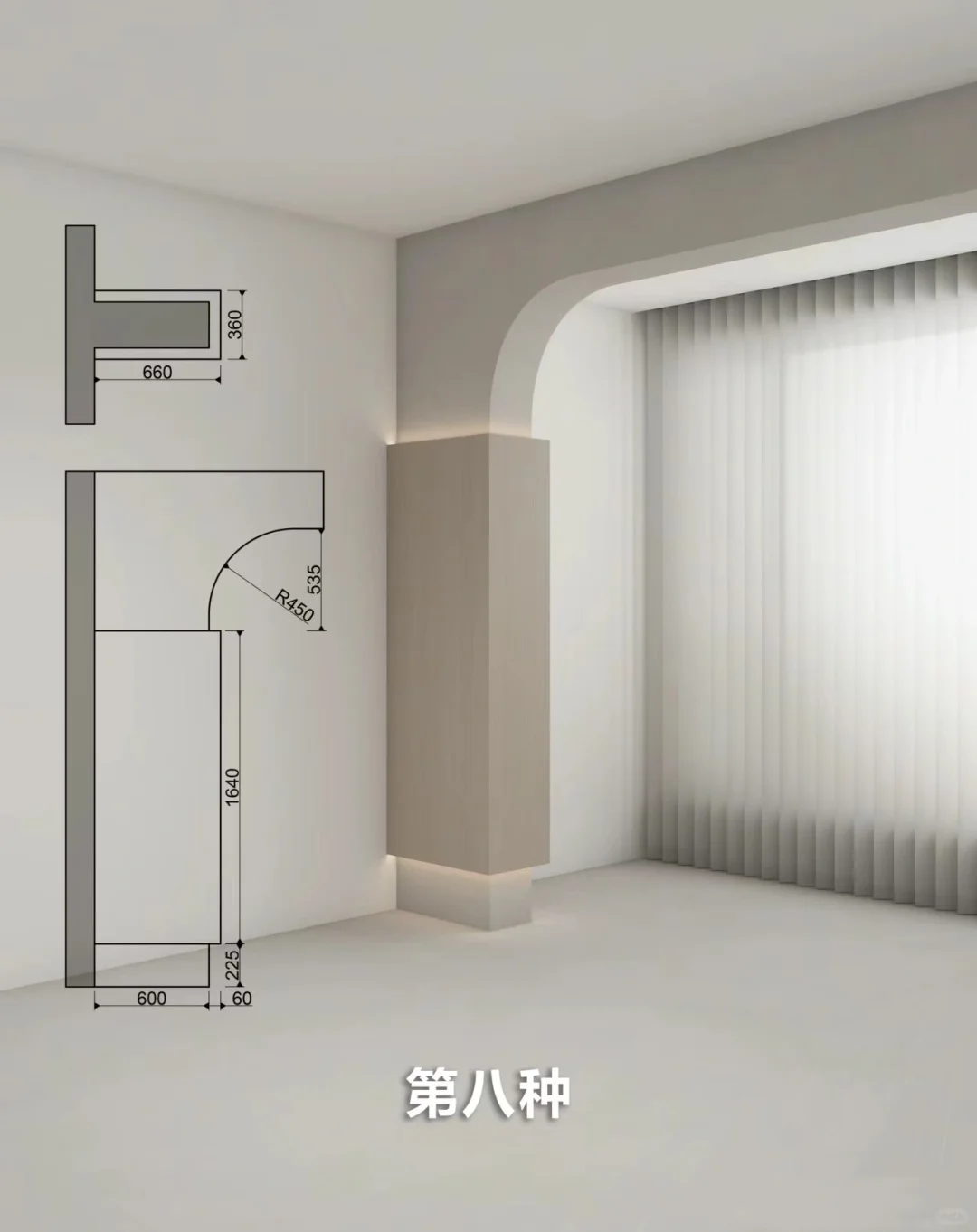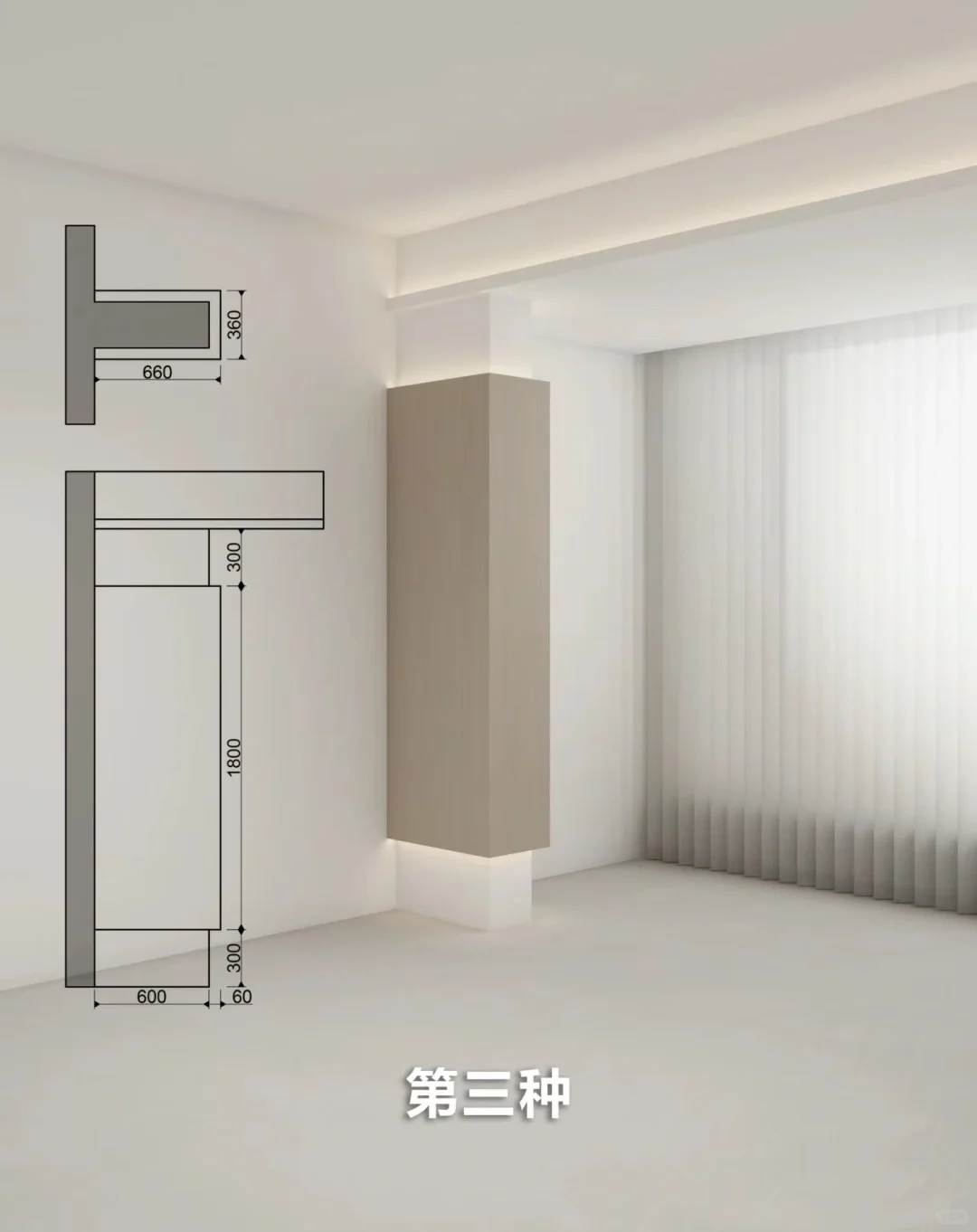 客厅阳台的墙垛处理办法,配合灯光和装饰面来弱化或强化