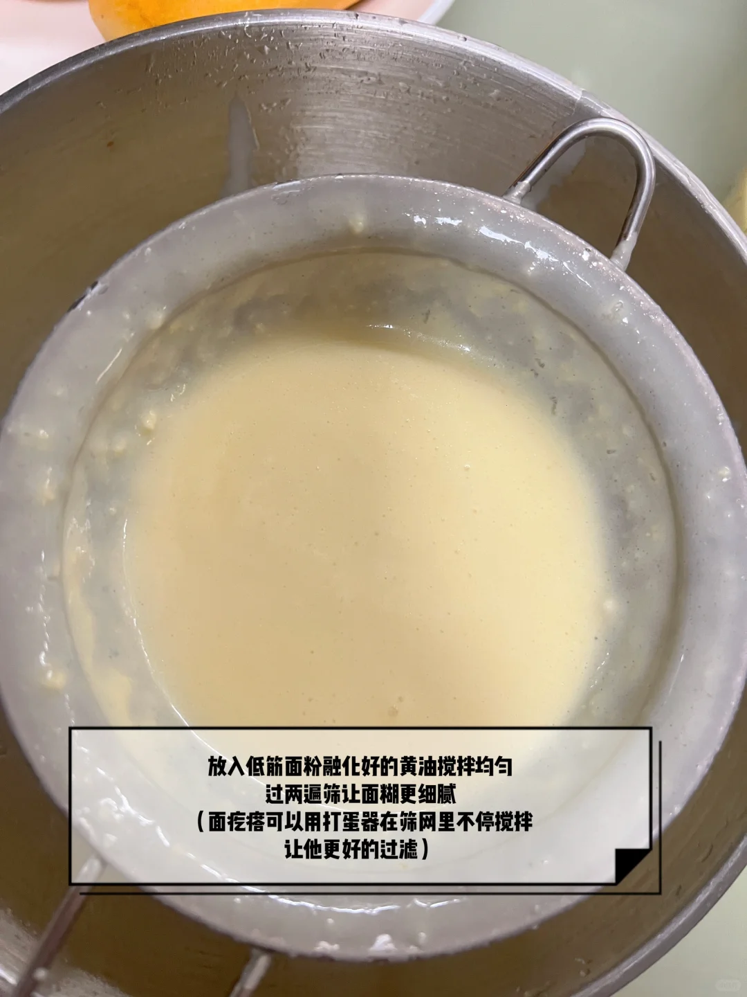 3️⃣面粉糊一定要过两遍筛,这样面糊会更细腻