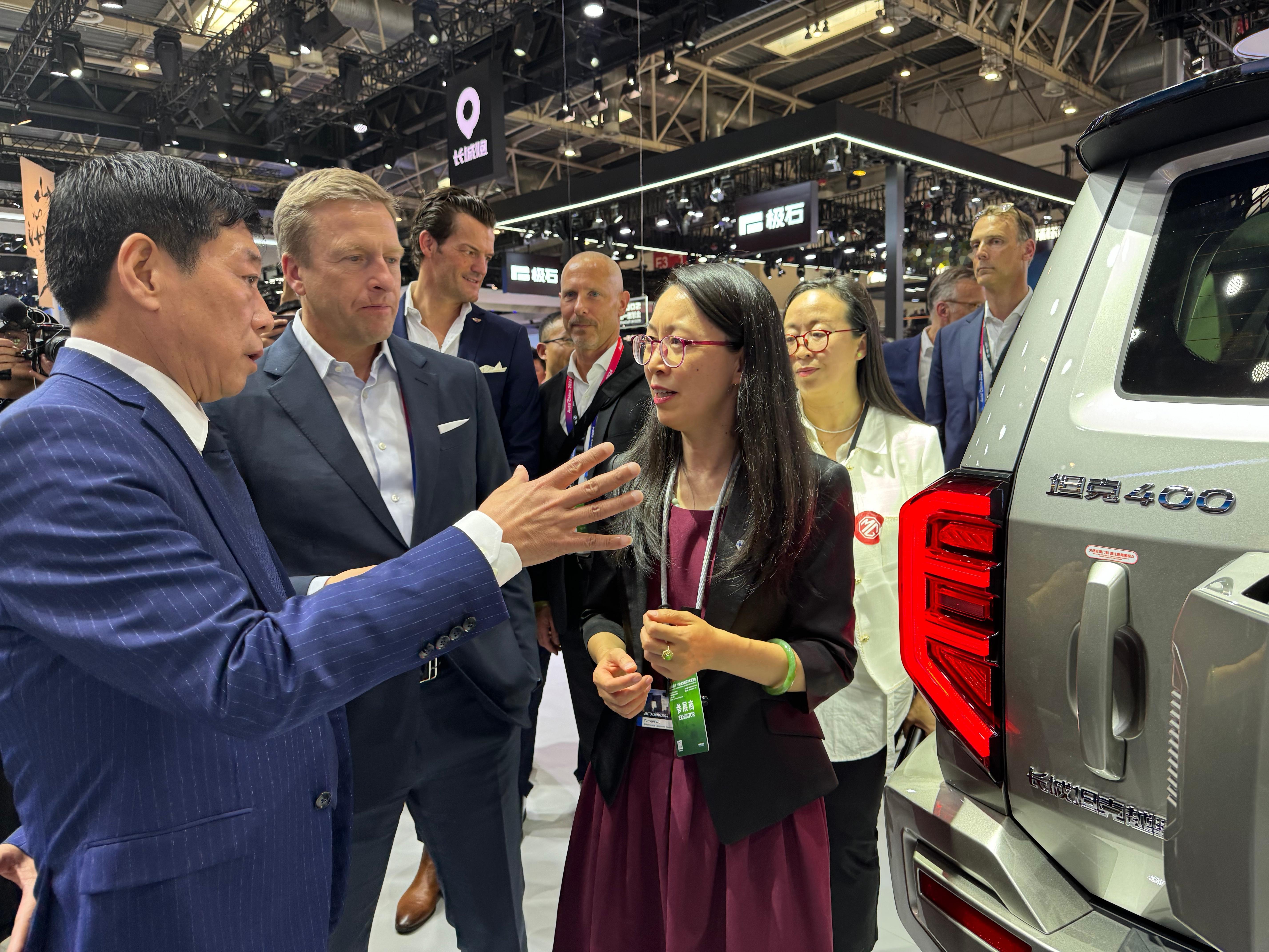 长城魏建军,在北京车展面对外宾,气场和风度还是很可以的,给宝马汽车CEO介绍自家TANK,也算是“谈笑风生”。
