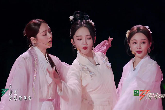#郭碧婷组 三个在冷宫失了智的嫔妃#这届网友是懂得评论的。浪姐5中,郭碧婷组抽到的曲目,是《雪落下的声音》。这三位小姐姐舞动的模样,被网友调侃,像三个在冷宫失了智的嫔妃。 有人说,怀孕是女人第二次投胎。当年瘦得被风吹倒的郭碧婷,如今双下巴难以隐藏,下颌线离家出走。看上去只有两个字:痴肥。向佐真是投了个好胎。
