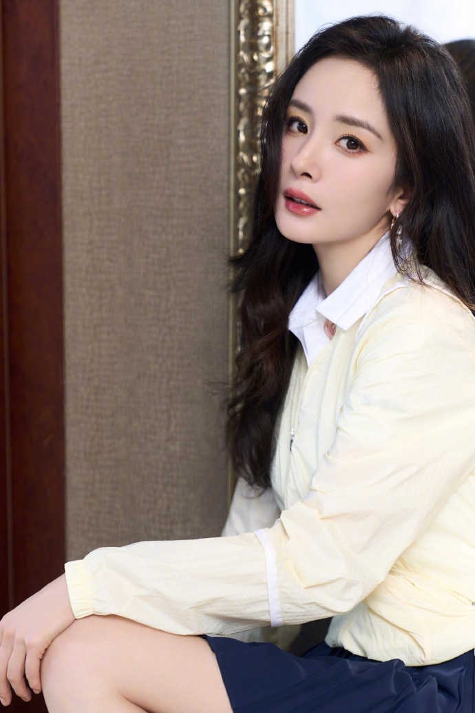 杨幂这一身,网友称之为最美营业装,像不像隔壁班的学姐?