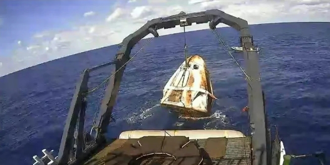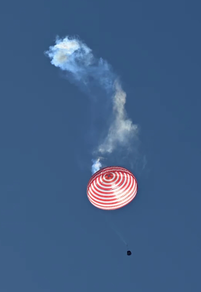 不知道是不是巧合,今天下午,老美和咱们的飞船一前一后,分别成功返回地球,一个是带货落海,一个是载人着陆。13:38,老马家执行CRS-30任务的货龙,携带1860kg货物(主要是科学实验载荷),伞降溅落于佛州附近海域(图1-2),货船是昨天凌晨01:10离开ISS的,采用24圈返回模式,整个下行过程耗时36小时28分钟。