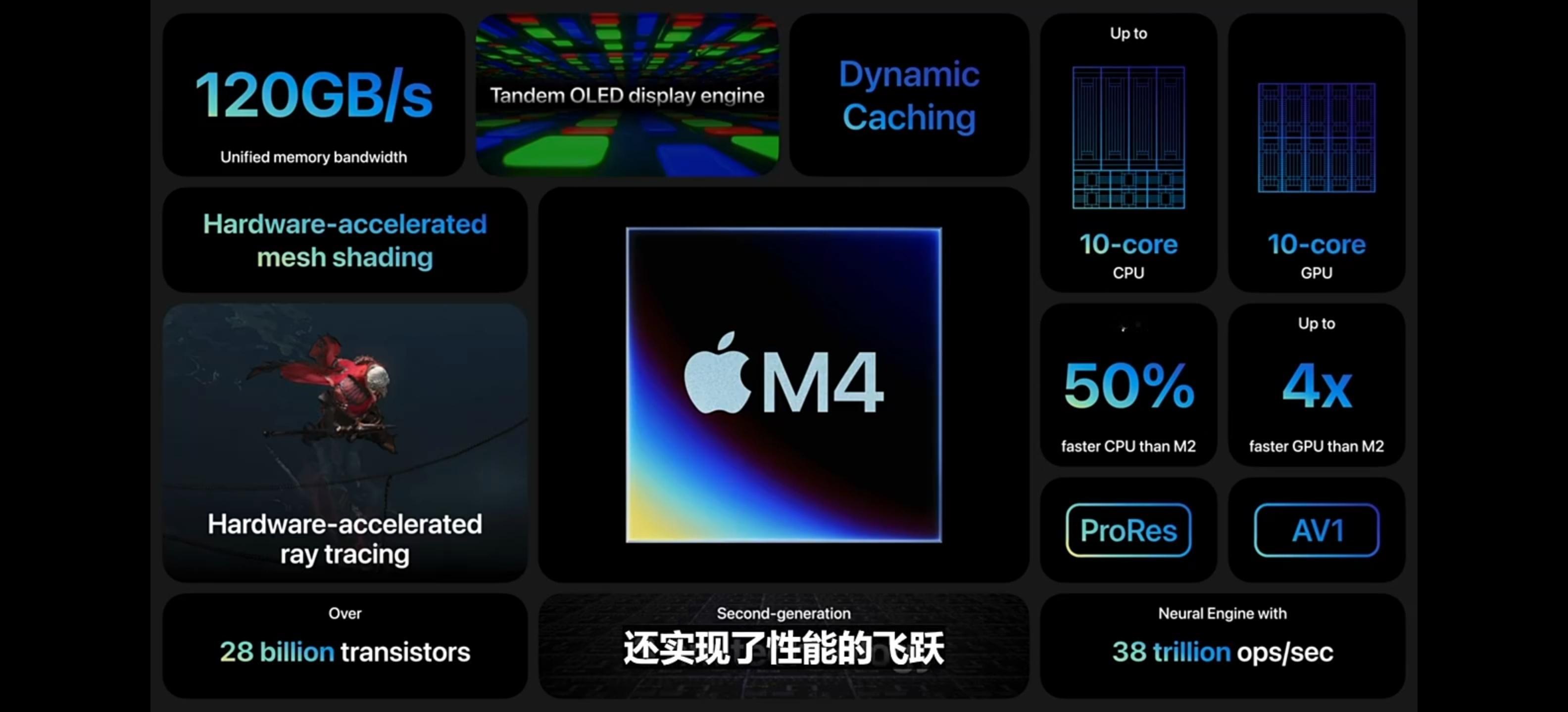新款iPad Pro首次配备了OLED屏幕,而且苹果为了实现基于OLED更好的HDR和SDR效果,定制了双层OLED显示技术苹果称之为【双层串联OLED】,总之, 搭载M4芯片的iPad Pro是为专业设计、生产力人士打造的专业平板。