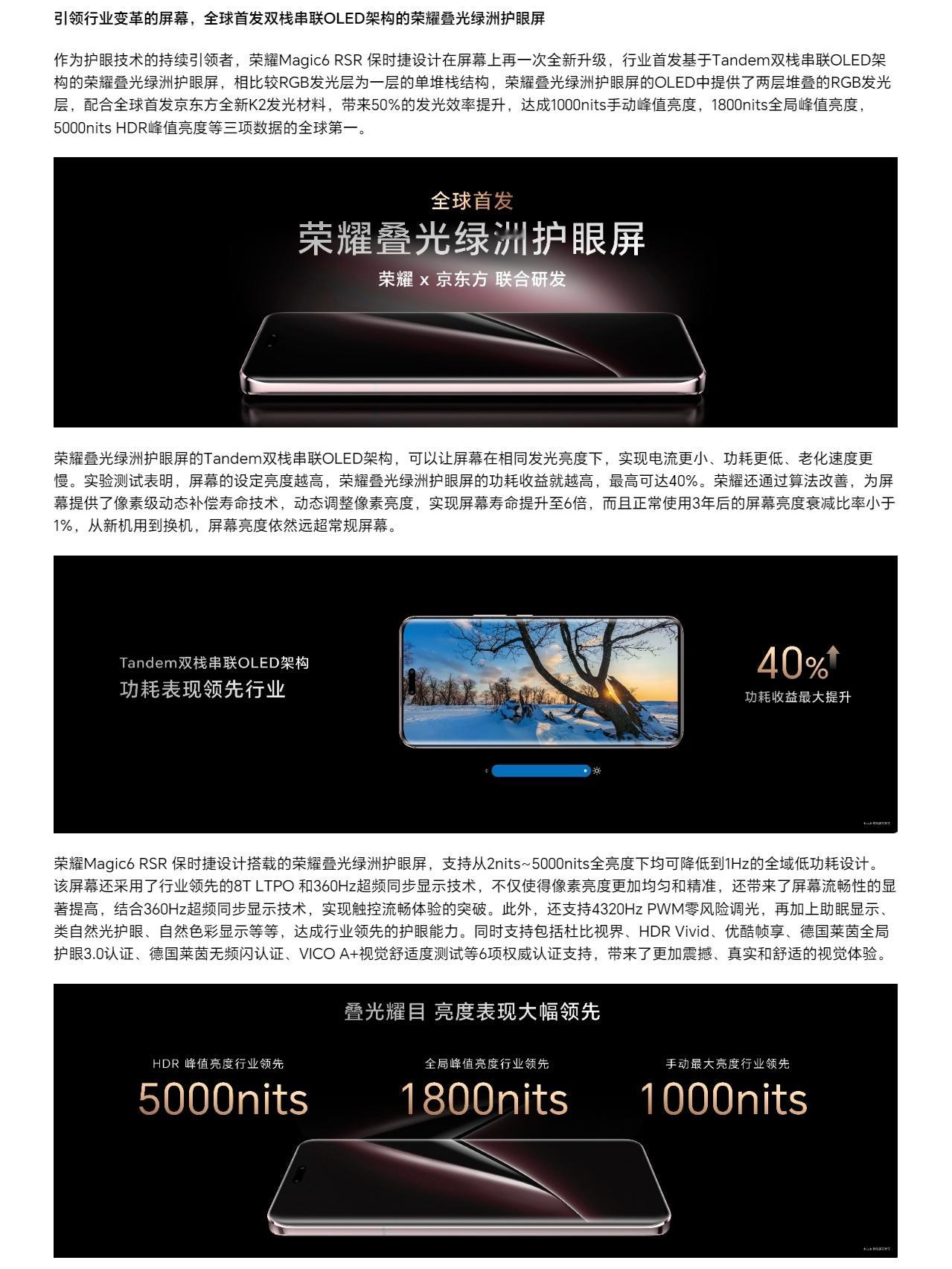 荣耀Magic6 RSR保时捷设计,已经用上了双栈串联OLED架构的荣耀叠光绿洲护眼屏。[doge][笑cry]