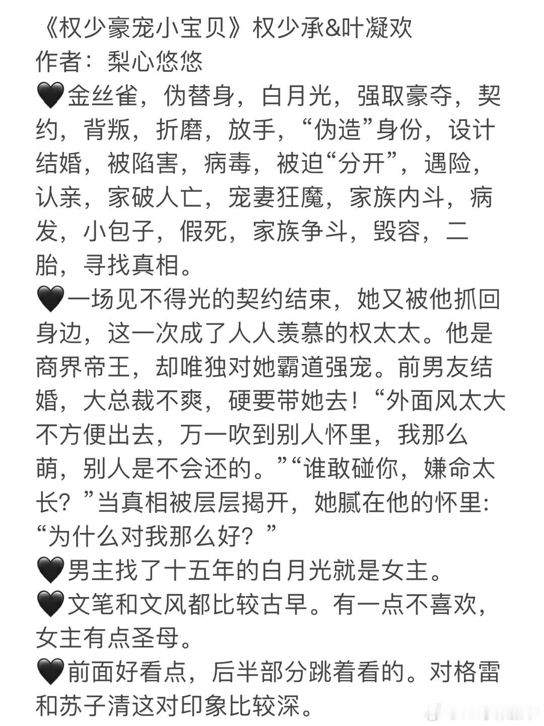 🌈《权少豪宠小宝贝》女主一开始是因为像男主儿时的白月光,而被他圈在身边。在期间