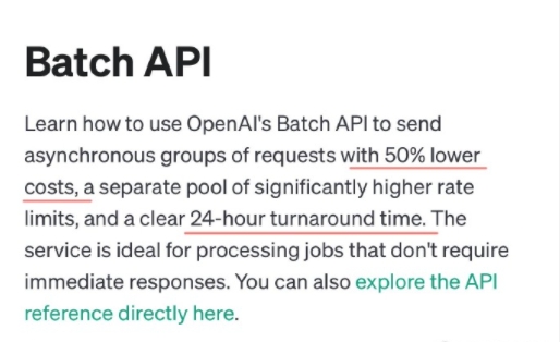 另外,OpenAI还提供有50%价格折扣的批处理请求,24小时才能返回结果(图4)。