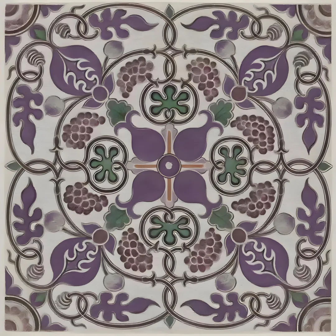 葡萄串儿多,籽粒饱满,果实里蕴含了多元祝福寓意。葡萄纹样从自然物象升华为文化符号,其核心寓意始终围绕“生命繁衍”“福运延续”“生活富足”,体现了传统文化“天人合一”的哲学观——以果品的自然属性隐喻人生理想,用水果艺术形式将物质需求与精神追求熔铸为一。