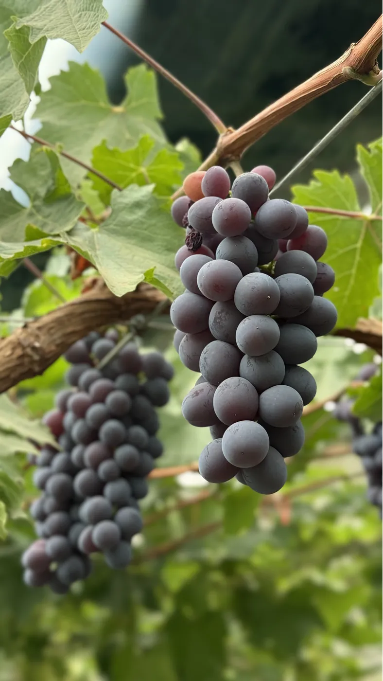 种 葡萄的农味种葡萄是件细活。葡萄藤得"顺性"。春天剪枝,要留"龙干",每节留两三个芽眼,像给藤子定了规矩。搭架子得用硬木,搭成"井"字格,通风透光,果子才不招虫。最要紧是水肥——伏天得浇"蒙头水",让藤子喝足;处暑后断水,逼出果子的糖分。