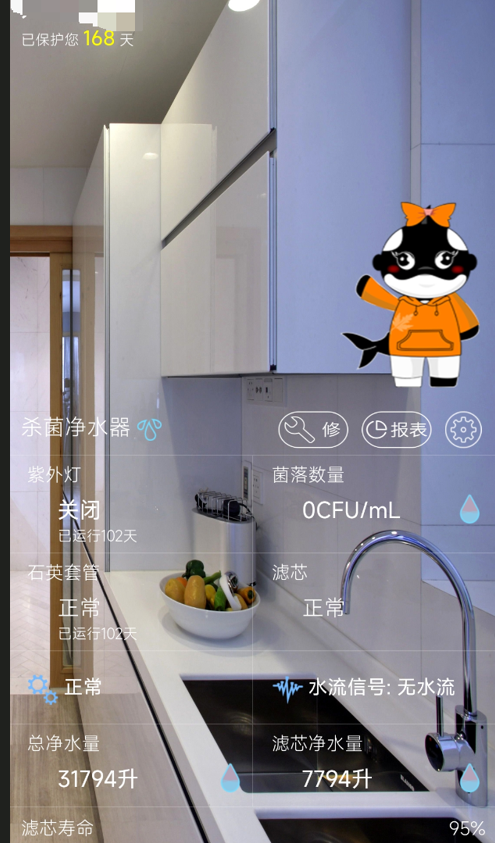 它还很“聪明”,所有状态都能在手机小程序上看到。水量怎么样、滤芯什么时候该换了,AOT杀菌模块是否正常工作,都一目了然。它会主动提醒我,再也不用靠猜来维护,避免了因为忘记换滤芯而导致水质下降的风险。这种把一切交给科技的感觉,真的很轻松。