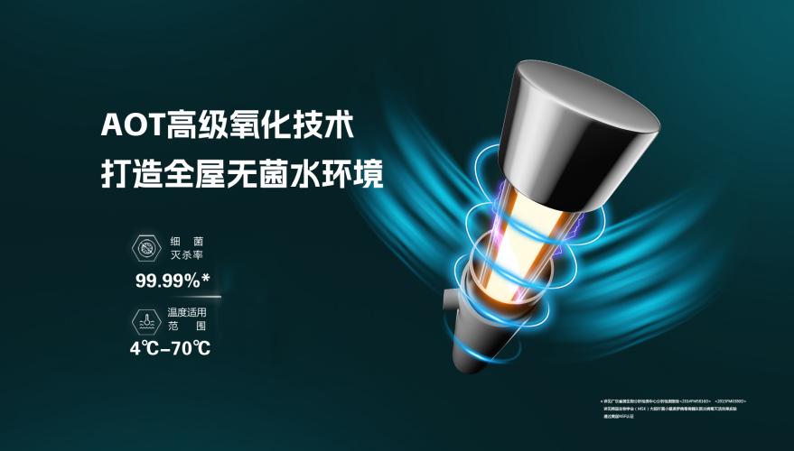我可以这么跟你形容:水经过层层过滤后,在流出水龙头的之前,还会经过AOT杀菌器进行杀菌,杀菌率高达99.99%。这让水里的细菌、病毒失去活性。也就是说,从我水龙头里出来的每一滴水,都是经过了这道“无菌”处理的。