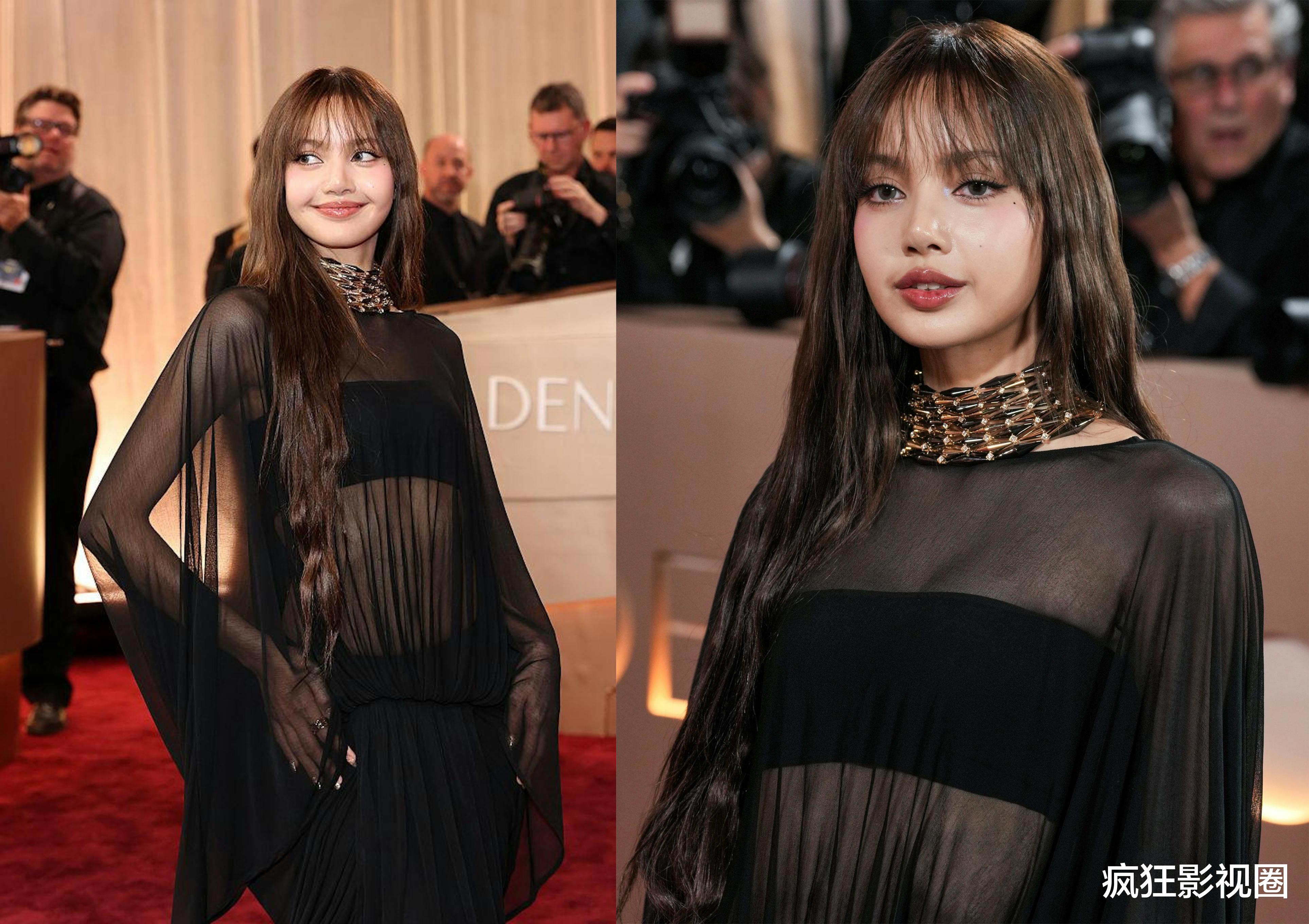 韩国女团BLACKPINK成员LISA以一身黑色透视长裙亮相,黑纱下透视衬底短衫大秀身材,腰间线条丝毫未有赘肉,马甲线若隐若现。