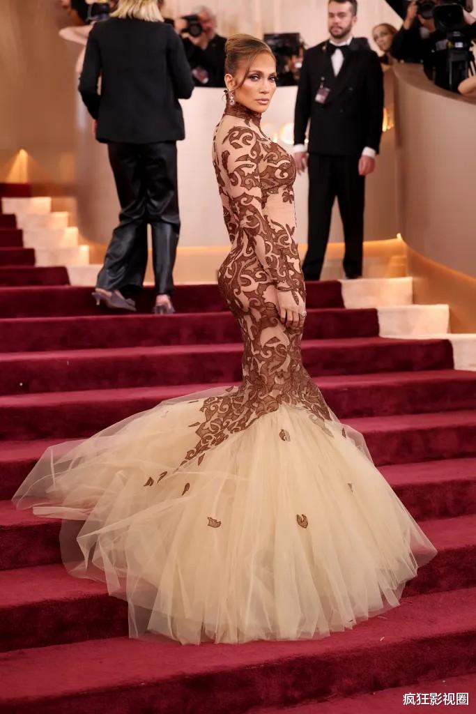 詹妮弗·洛佩兹身穿一袭鱼尾礼服,不仅将自己的曼妙身材展现的淋漓尽致,还给人一种尊贵女王的压迫感。