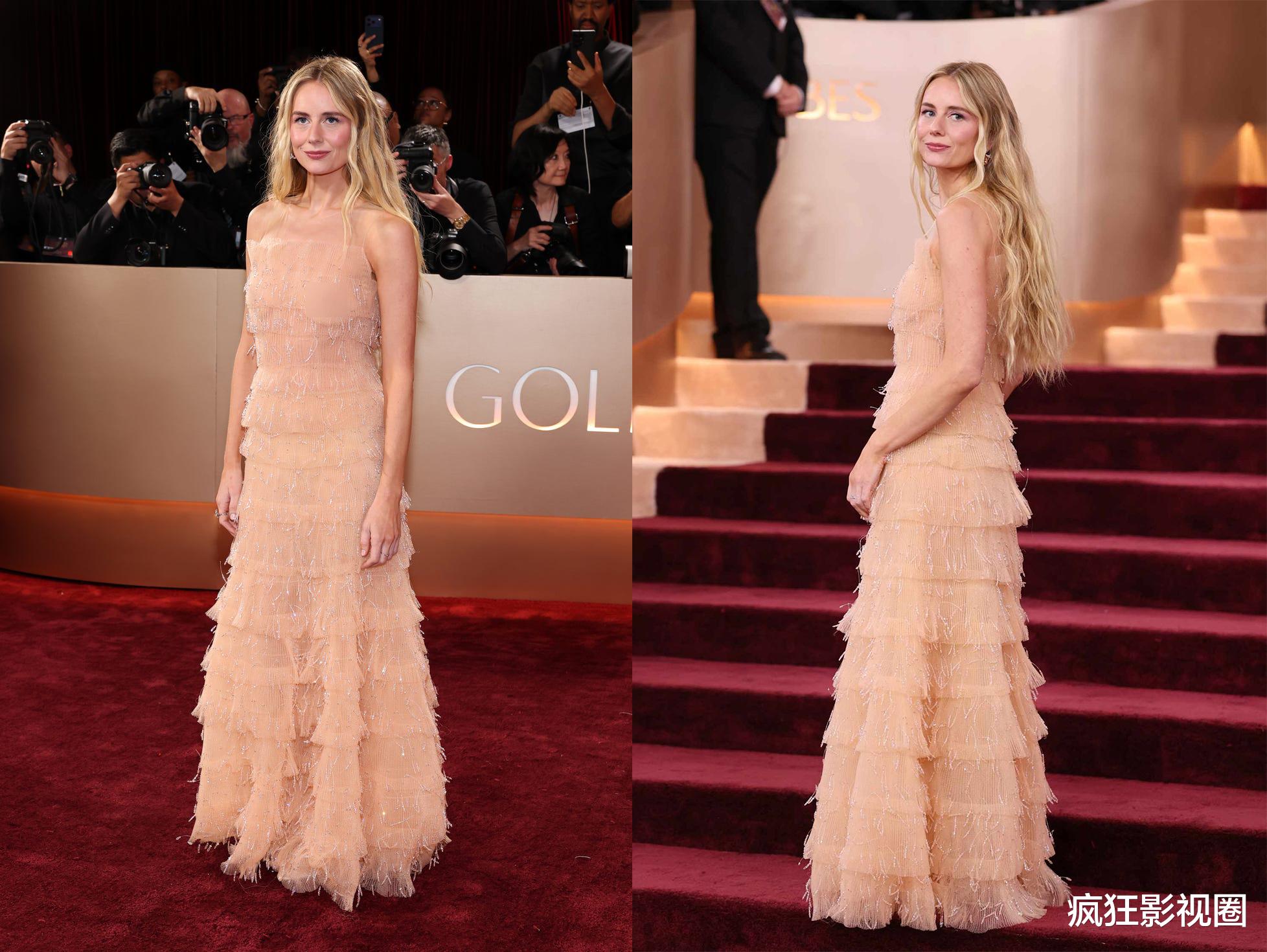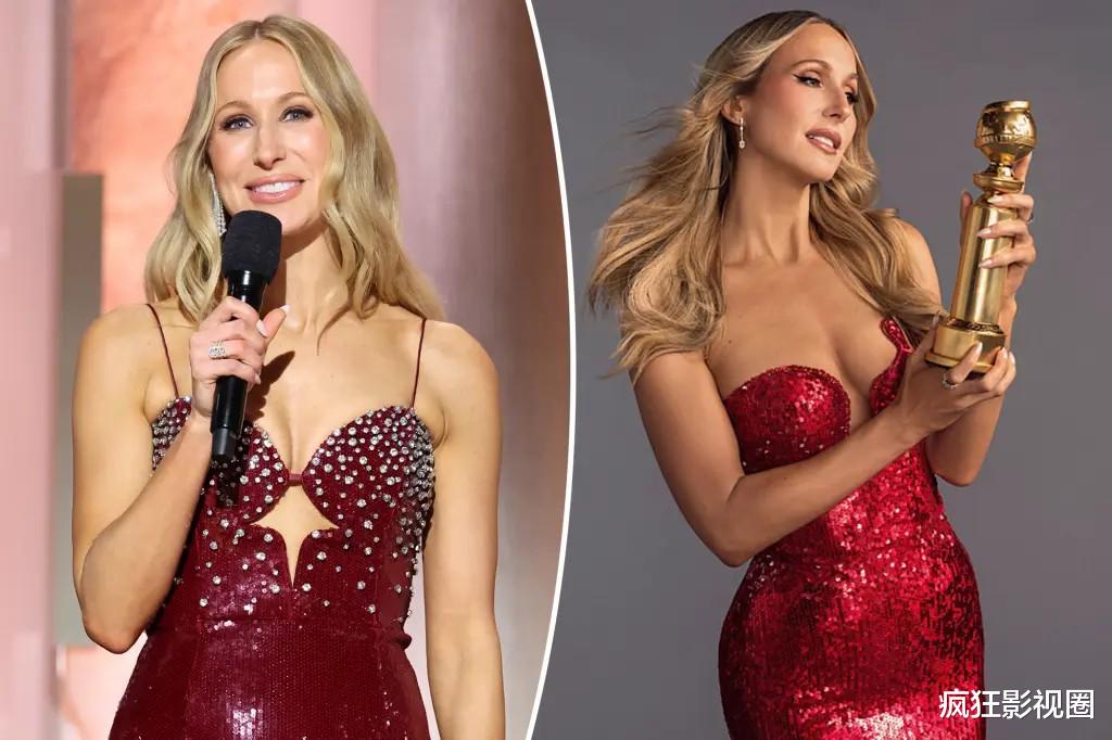 和往常一样,这次红毯还是在洛杉矶的豪门圣地比佛利山庄,金球奖主持人妮基·格拉泽身着一袭粉嫩礼服,成为当晚的焦点。