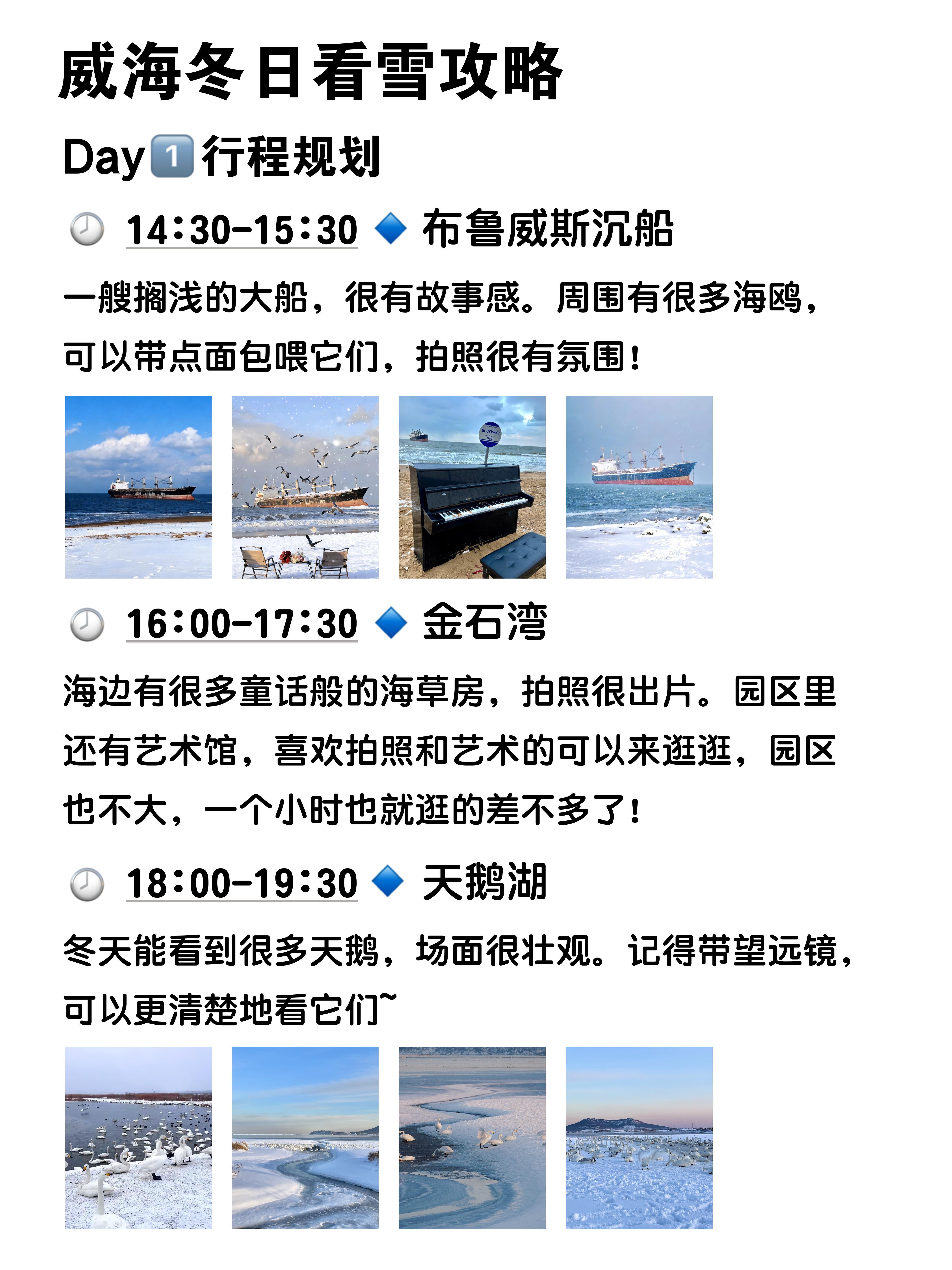 📃路线行程🌟Day1 先冲火炬八街拍照📸,再去国际海水浴场踩沙玩水💦,接着到悦海公园看灯塔和布鲁斯沉船🚢,金石湾拍童话海草房,再天鹅湖看天鹅~