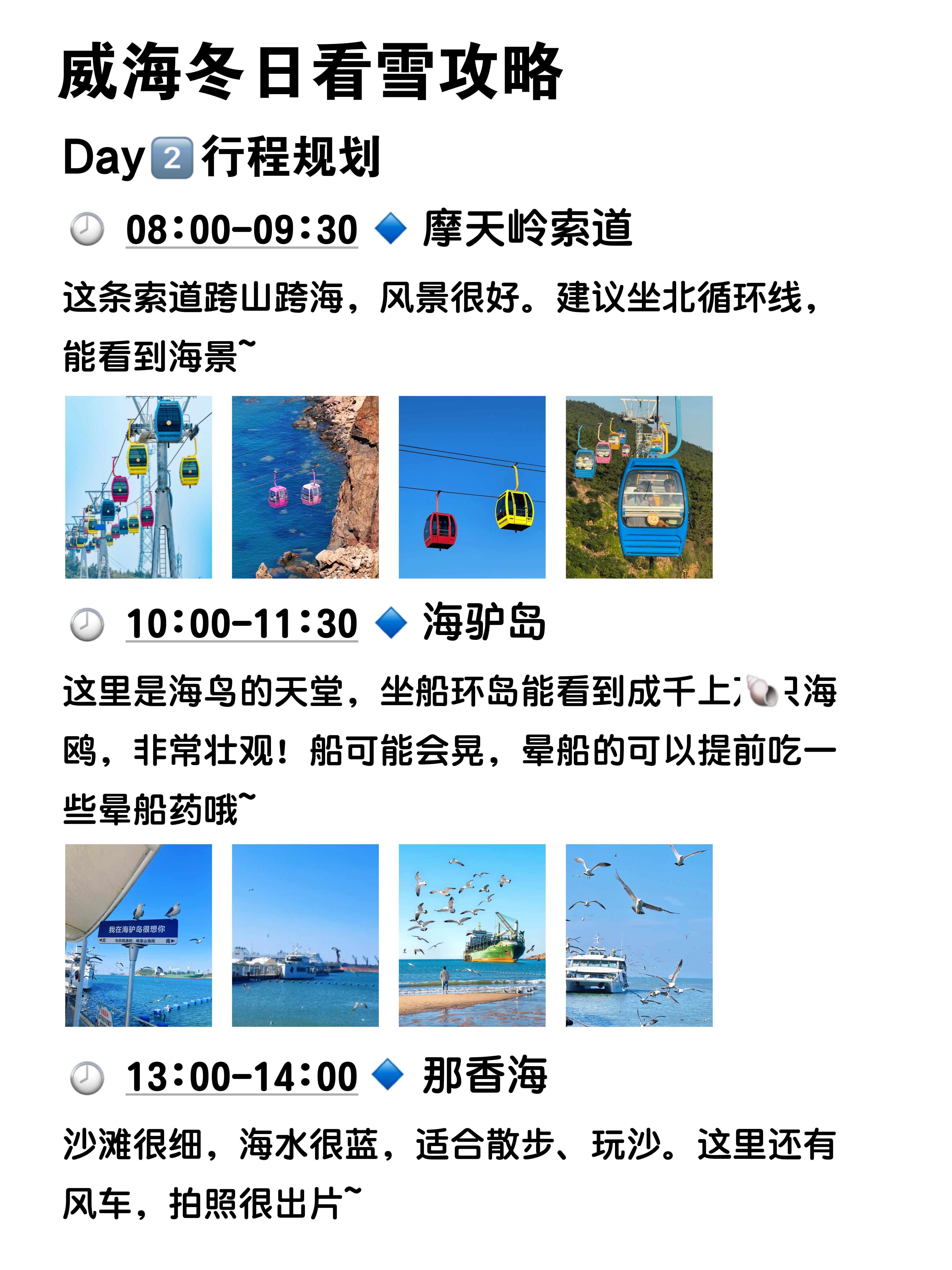 🌟Day2 坐摩天岭索道🚠俯瞰山海🌊,海驴岛喂海鸥,那香海躺平看海,威海公园打卡大相框,江古咀看海发呆,半月湾等日落收尾!