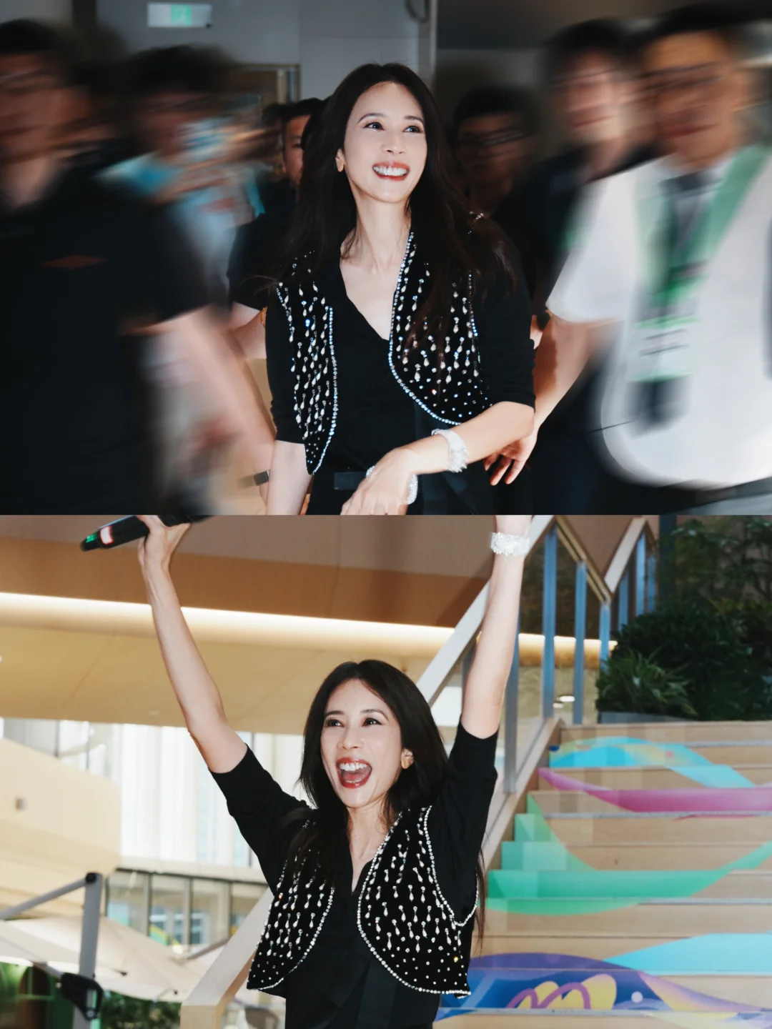 莫文蔚!莫后今天来阿里大文娱总部扫楼啦,真的是刷新了对追星氛围的认知! 现场一起大合唱了盛夏的果实谁懂!!🤩现场互动热烈,感觉自己像是置身于娱乐圈的中心!排面拉满🌟
