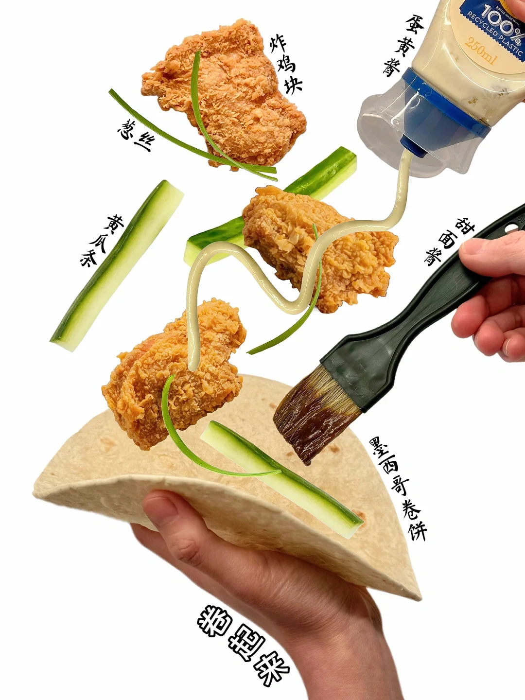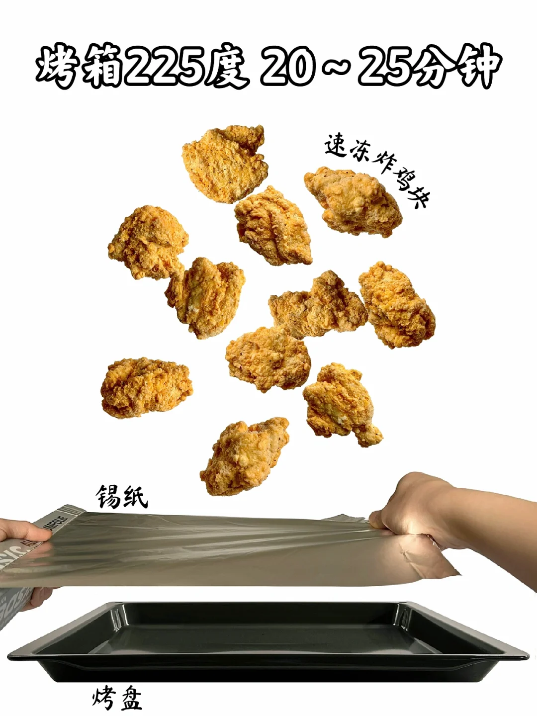 用烘培纸包起来 在微波炉里高火叮个十几秒 饼变软后口感会更好呦~ 👉Tips 炸鸡块烤15分钟左右时翻个面 🉑使表面烤得更加酥脆均匀 这款鸡块是有咸味的 甜面酱不宜放多 具体酱料用量🉑根据个人口味添加 👉小建议 如果你没有速冻的炸鸡块 可以用快餐店里炸好的鸡块呀 🫶个人喜好 蛋黄酱稍微微多点更好吃