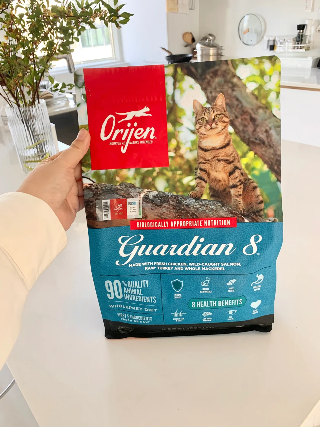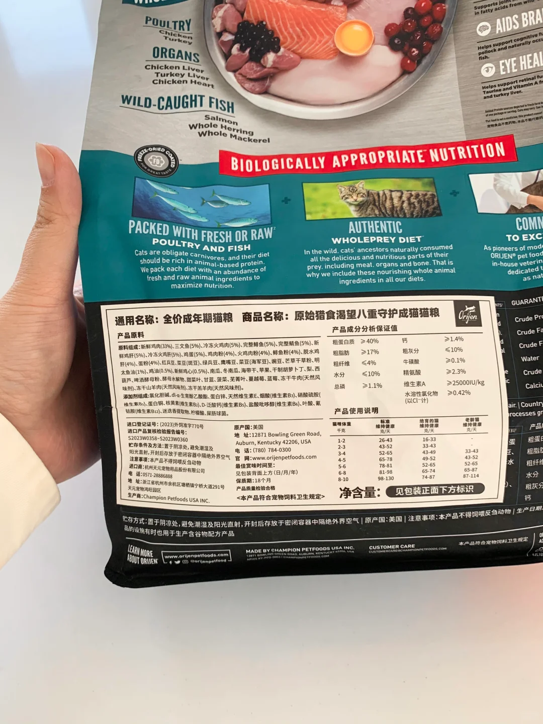 因为七仔从小坎坷,身体比较弱,所以我选的是另一款——ORIJEN原始猎食渴望八重守护配方猫粮,特制的配方能够从免疫、肌肉、关节、消化系统、皮毛、大脑、心脏、眼睛八个方面照顾它~