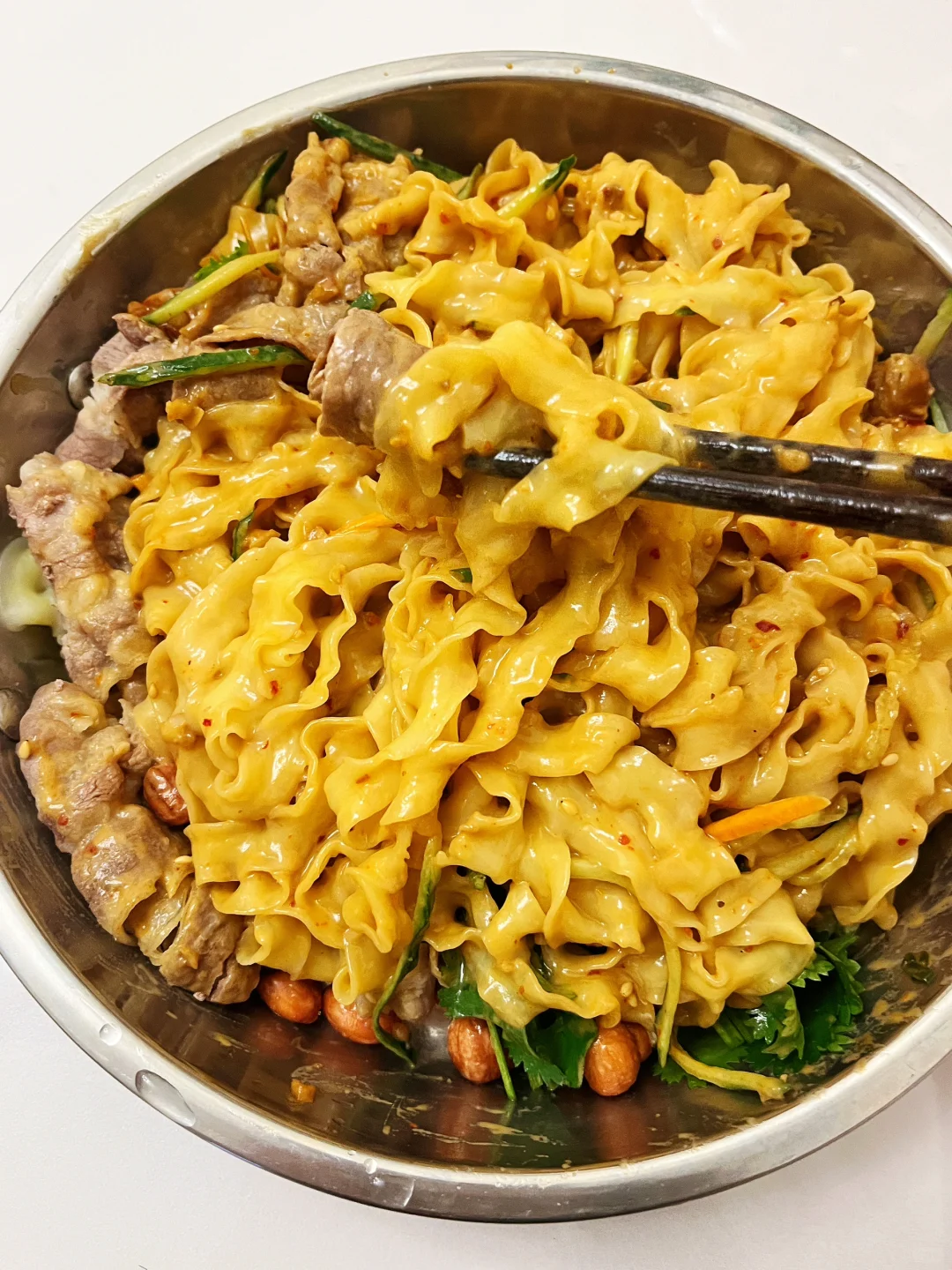 刀削面劲道入味,裹着浓郁的酱汁,酸辣开胃越嚼越香[哇R][哇R]
