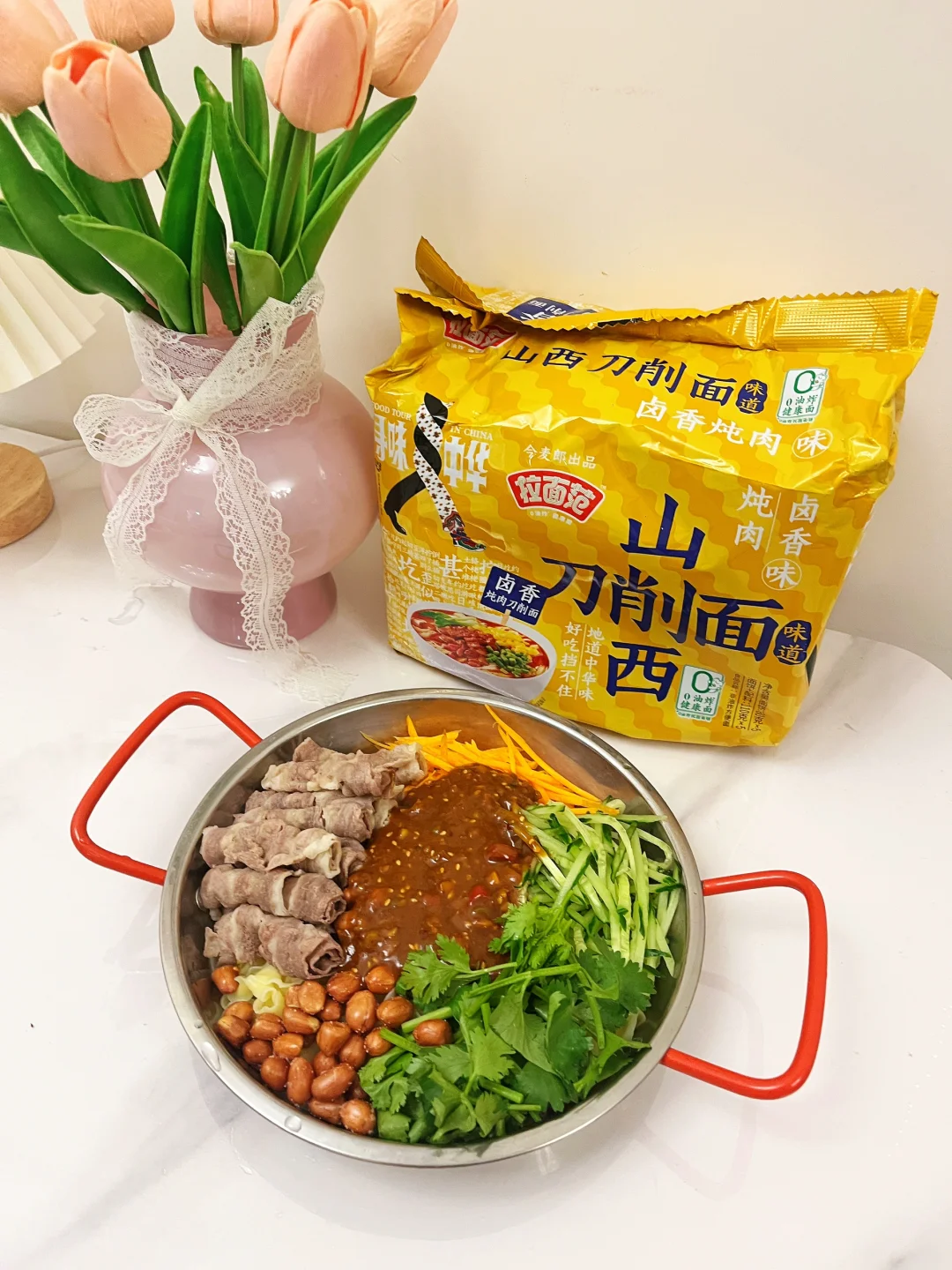 拉面范山西刀削面真的是我最近的速食新宠,波浪形的面花特别漂亮,中厚边薄,棱角分明,自带的料包特别丰富,还有地道的山西陈醋包,简直是刀削面的灵魂!面饼是还是0油炸的,更健康,可以煮可以泡,真的太方便了,煮着吃更好吃。寝室居家都可以做,喜欢吃面食的姐妹们一定要试试!!强烈推荐![赞R][赞R]