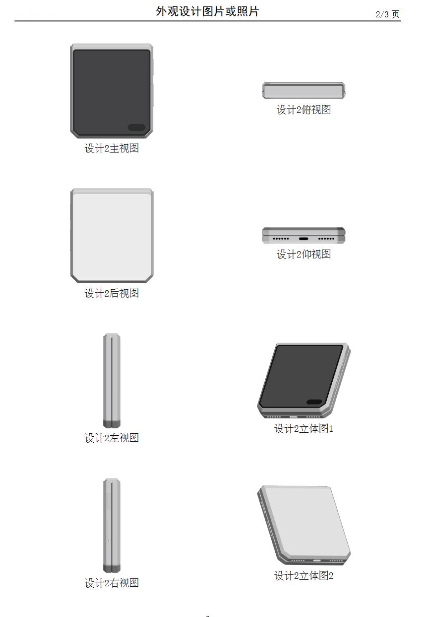 荣耀首款小折叠屏Magic V Flip外观设计专利图曝光,双摄配背部超大面积药丸打孔外屏。