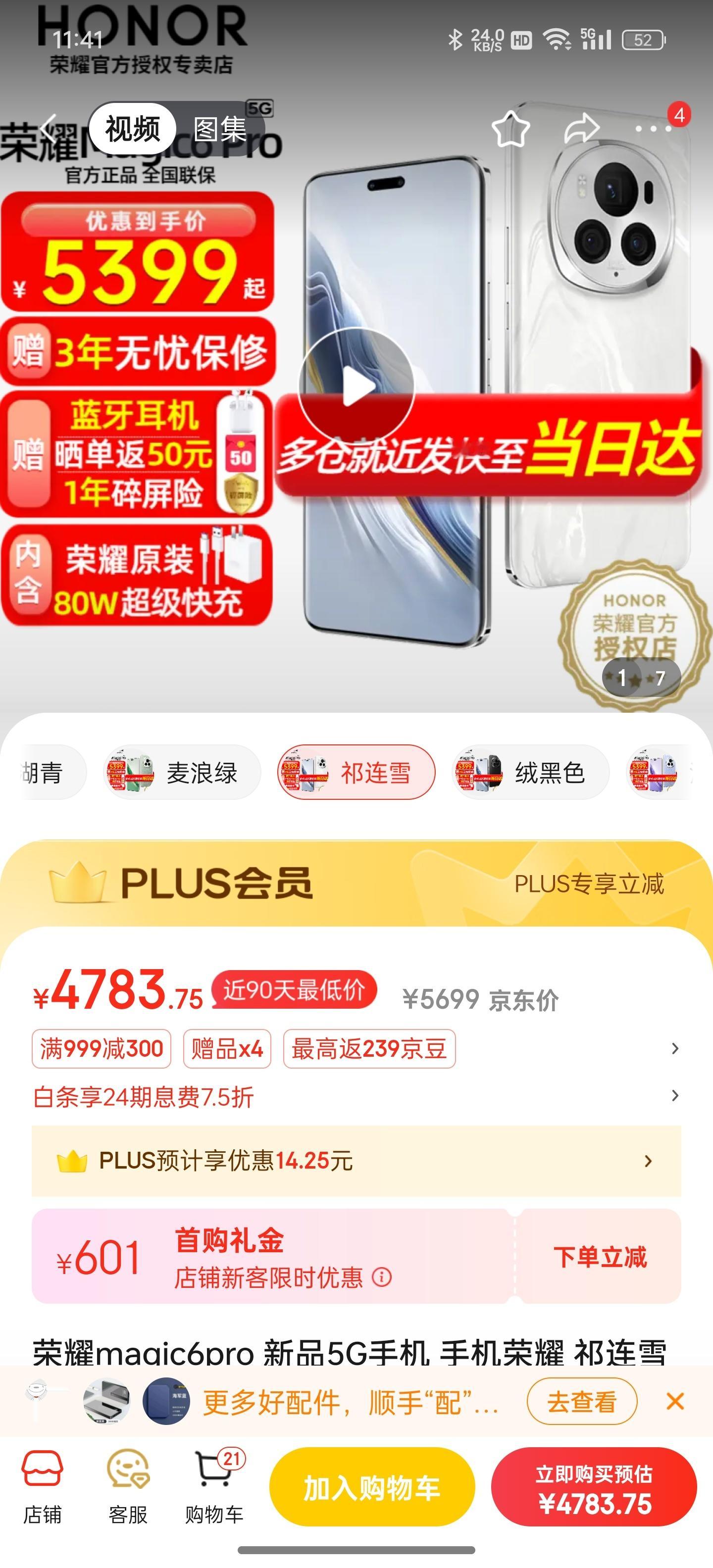 【荣耀】推荐Magic6 Pro 4600出头就能拿下,或者至臻版,根据个人预算。