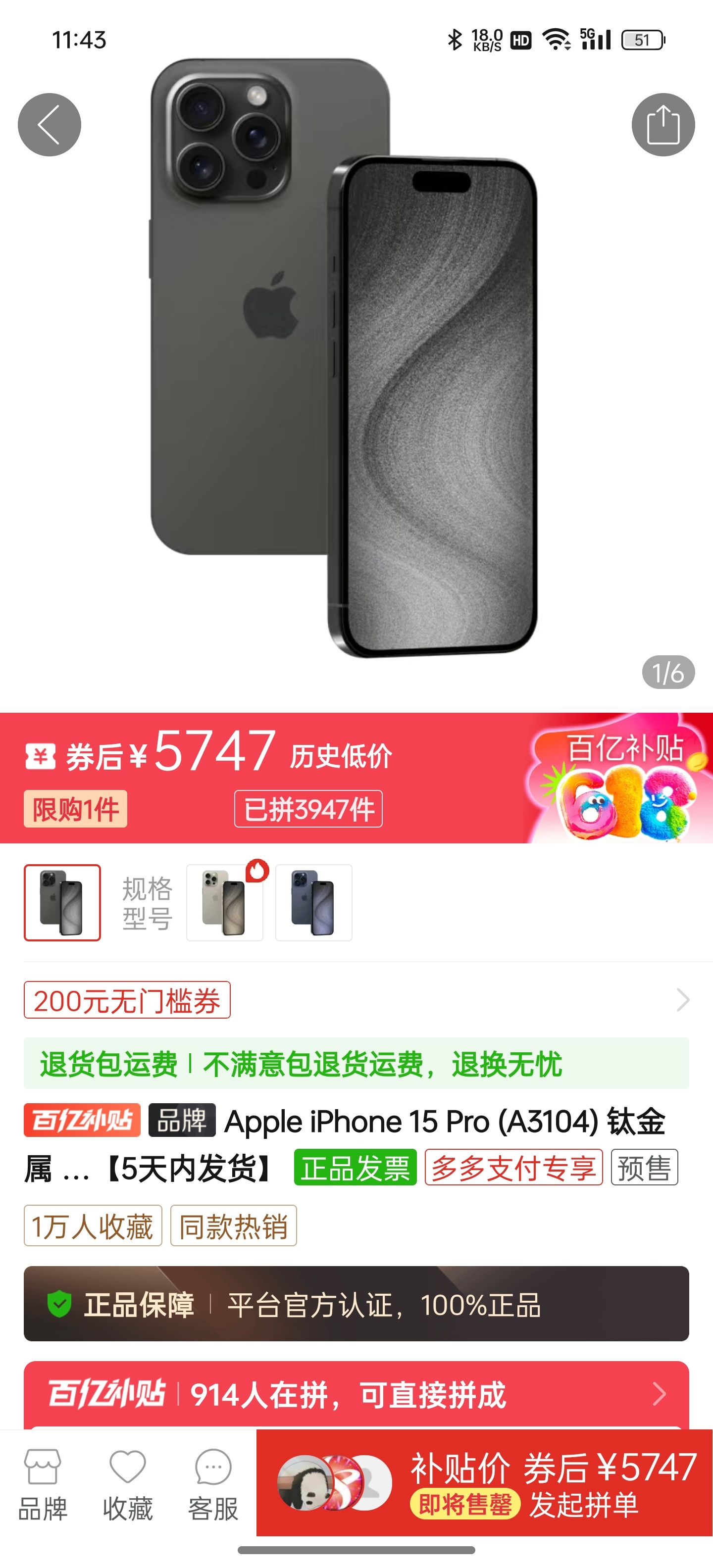 【苹果】推荐iPhone 15 Pro现在5700左右,性价比很高。