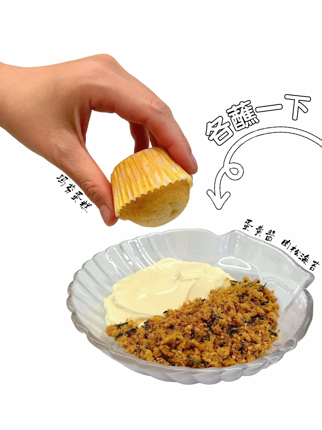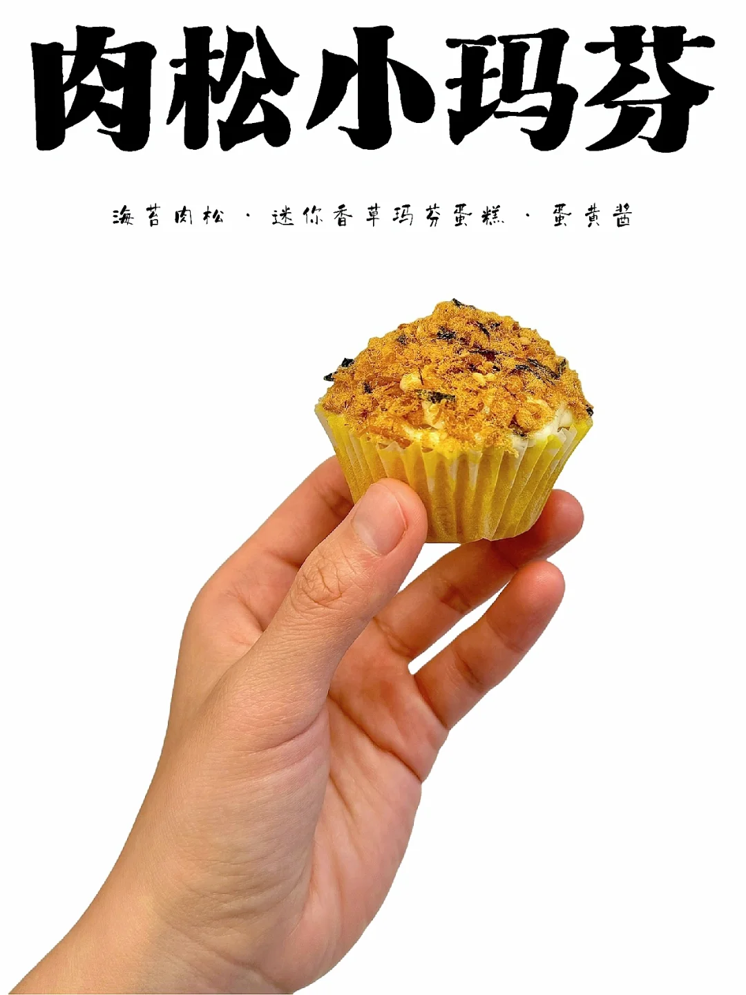 松软而湿润的肉松小玛芬 入口咸香交织 吃起来感觉软绵绵的 做早点或下午茶小点都不错[派对R] 👉Tips 小蛋糕🉑改用原味的