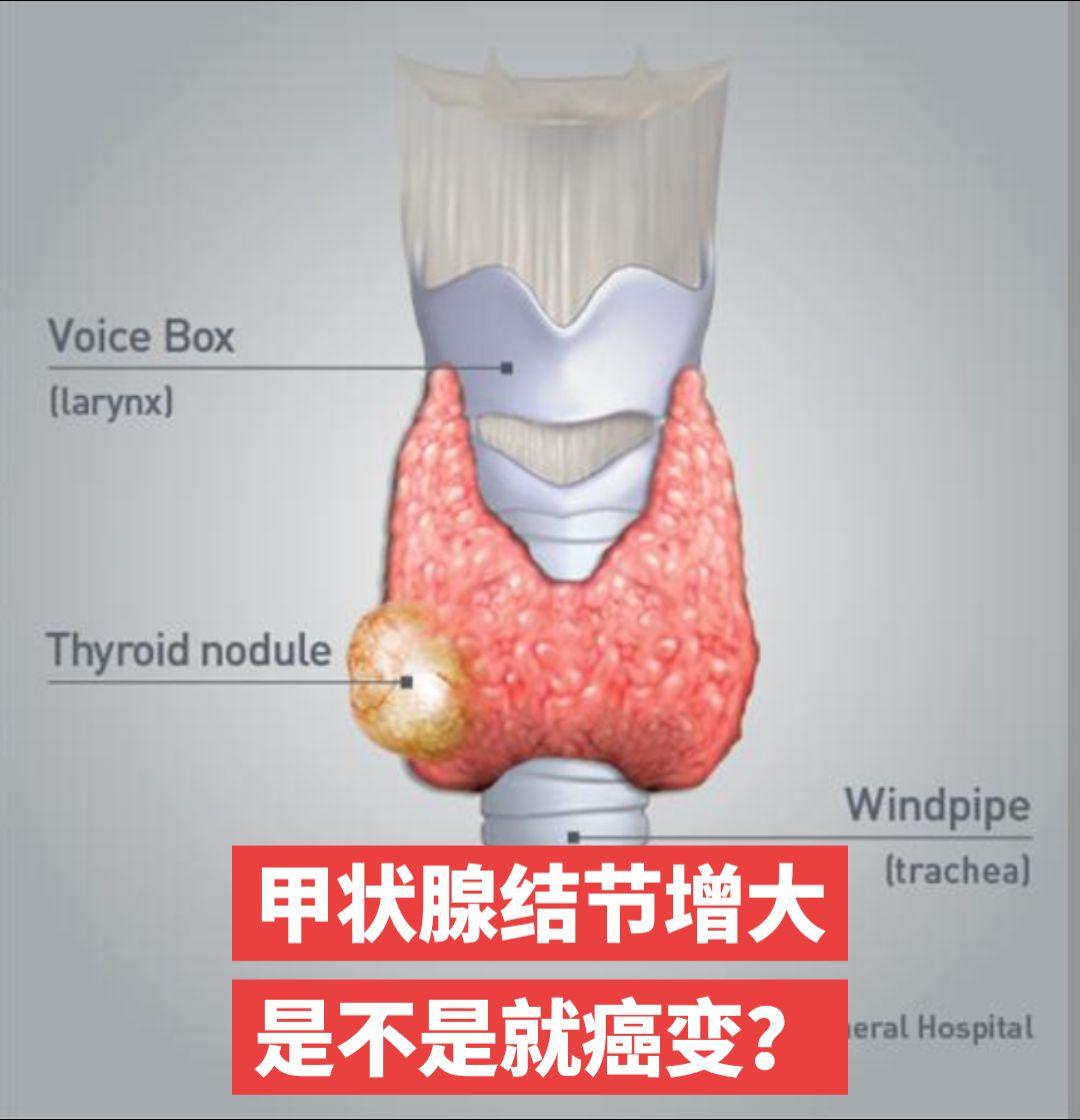 结节增大,就是癌变吗?🦋🦋结节突然增大不用担心🦋🦋 不少患者来门诊,因为多年的结节突然增大。很担心结节恶变了,病情复杂了😭😭😭 实际上,如果是良性结节,很少恶变,除非一开始就是恶性的,只是起初结节太小难以判断。😇😇😇 临床上,不少突然增大的结节是由于结节性甲状腺肿伴出血囊性变。本身是良性病变。 如果结节太大,产生了局部压迫不适,可以行微波消融治疗;如果结节以实性为主,消融有时消退困难,可以腔镜部分切除,效果很好,也可能不用服药。 总之,如果结节突然增大,还是需要及时咨询专业外科医生,尽早