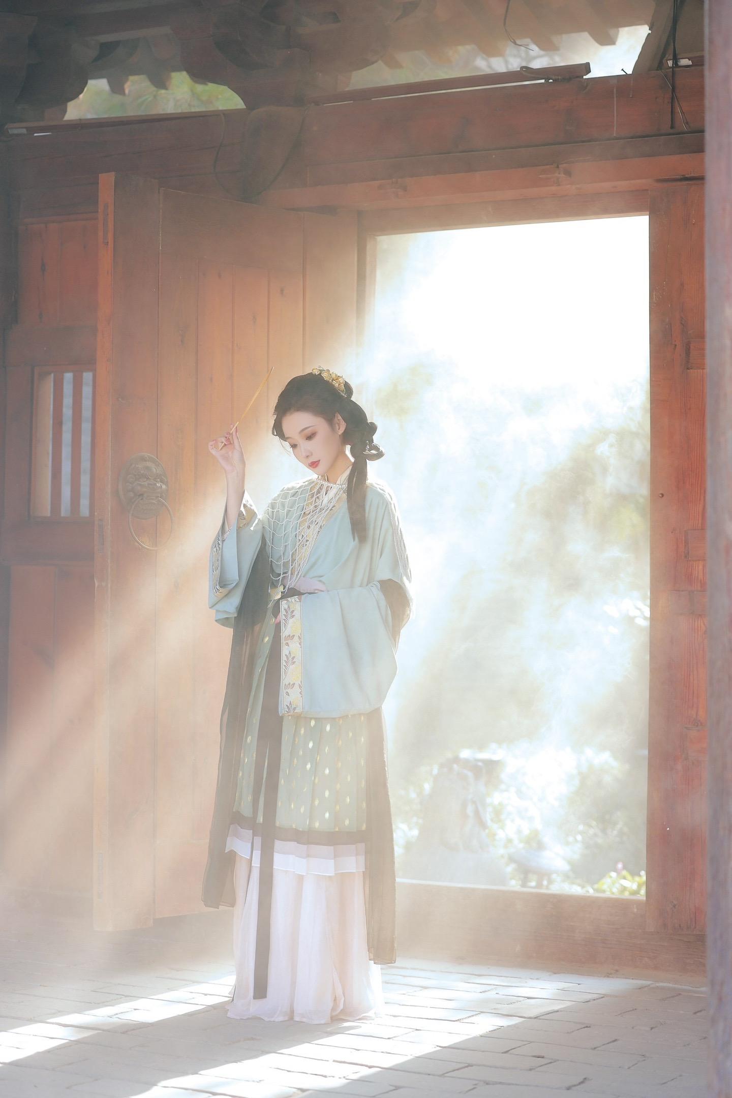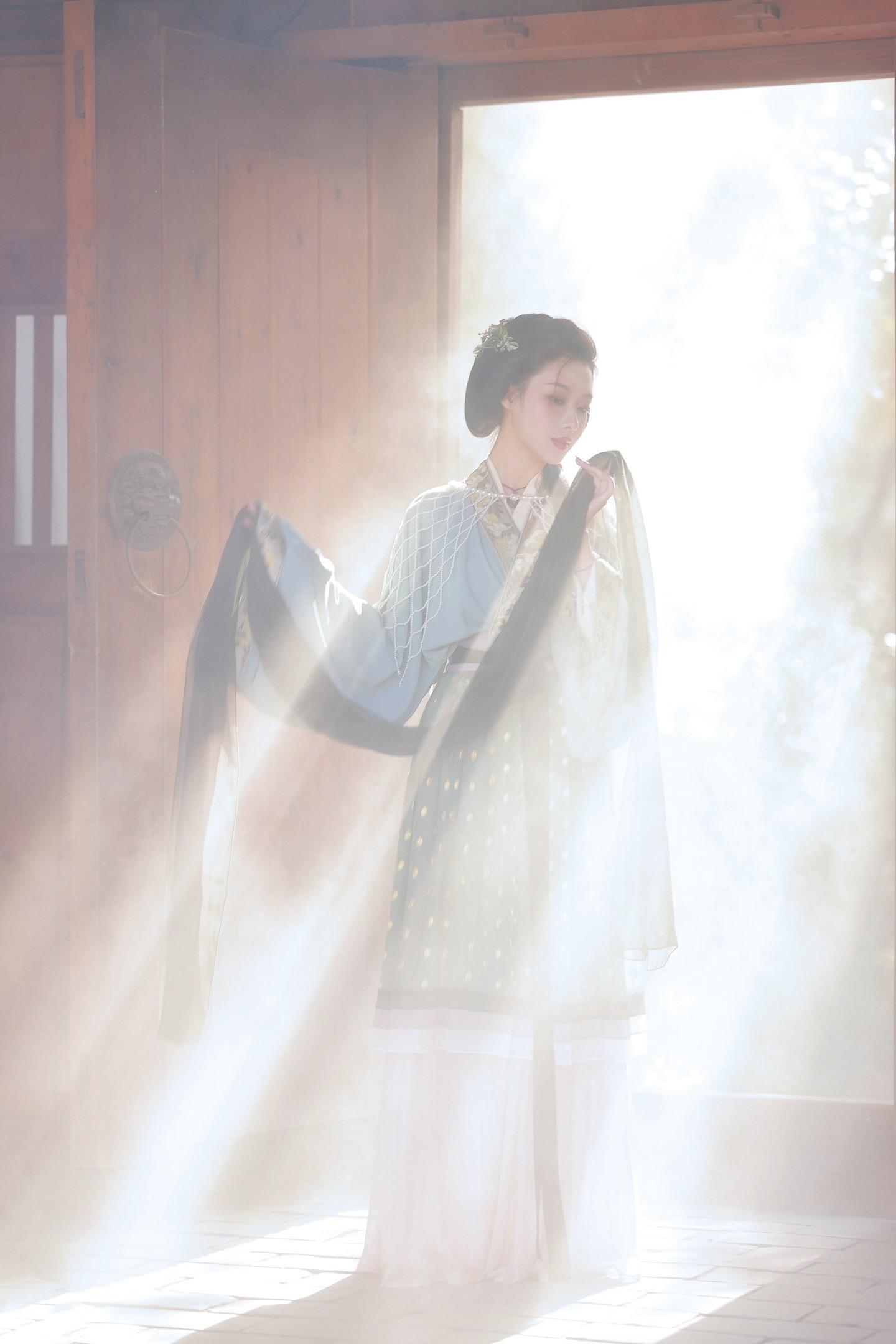 她从画卷里走出来。抓到了光的形状