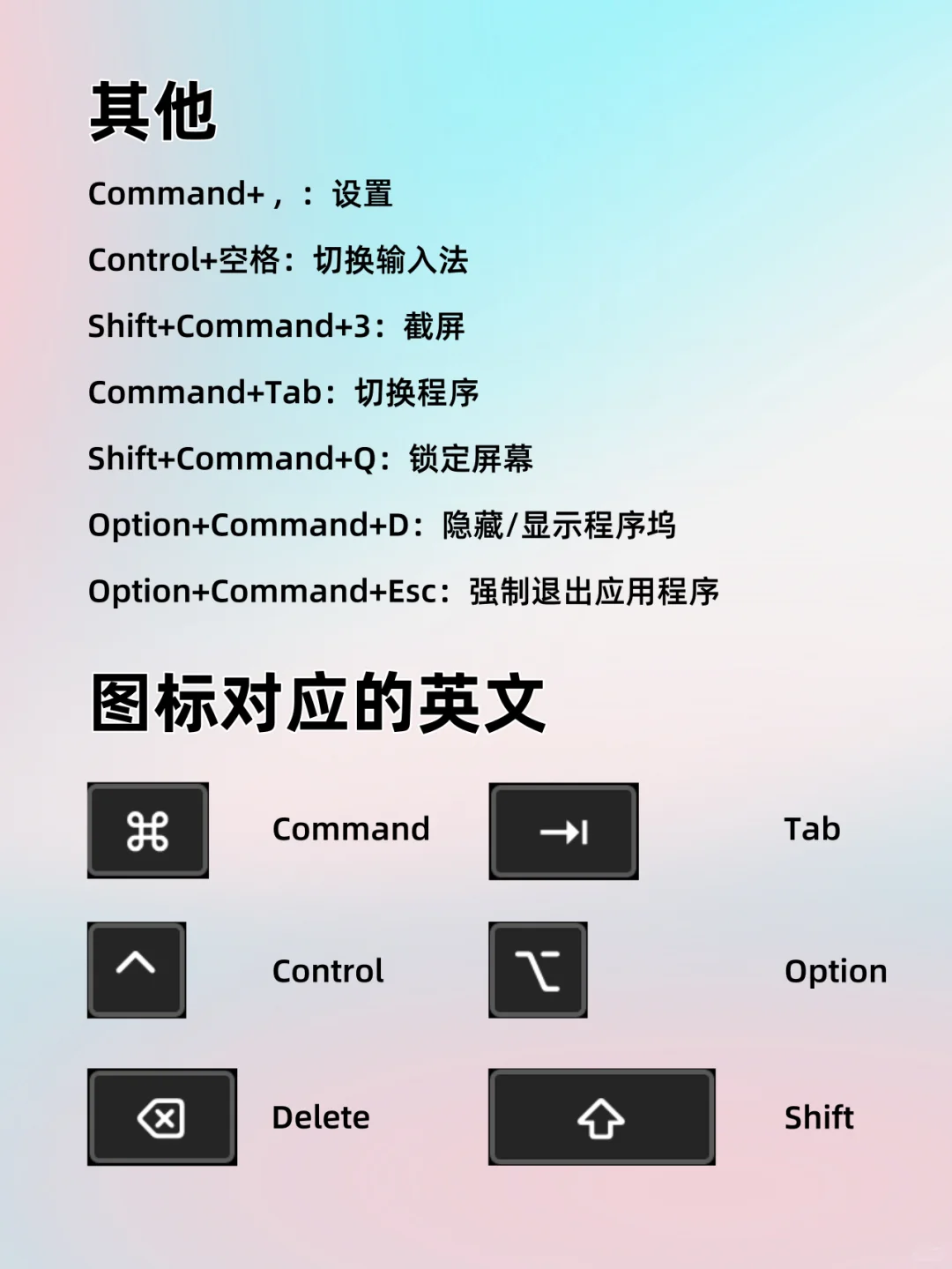 超详细的苹果电脑快捷键来咯,还有图标和英文对照,一看就会。 持续更新苹果使用技巧。