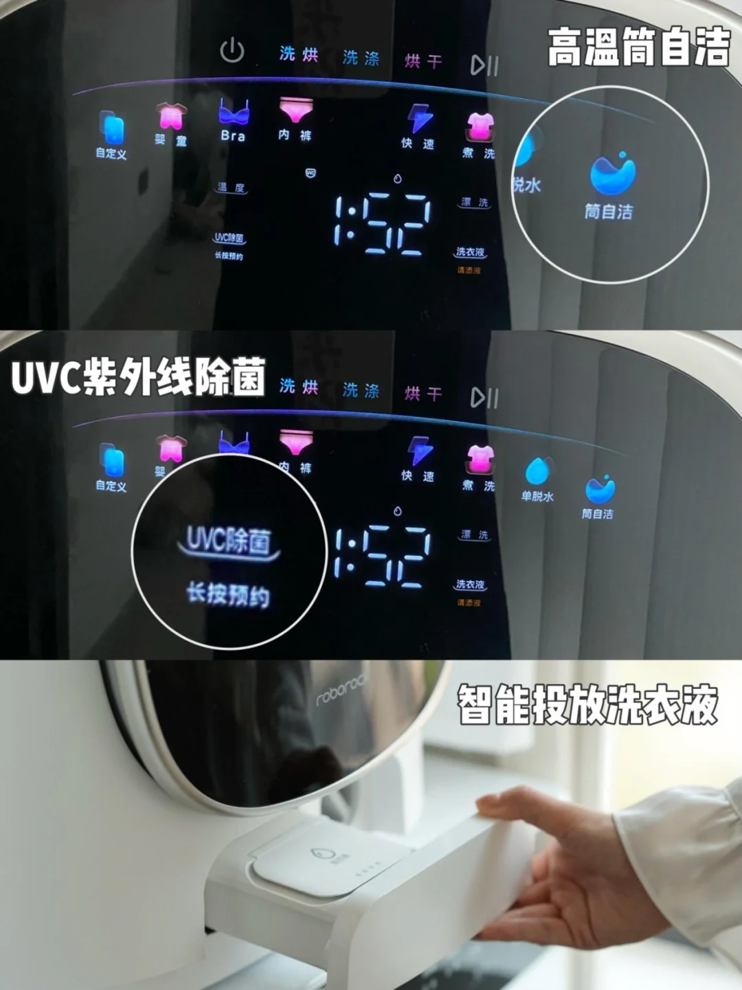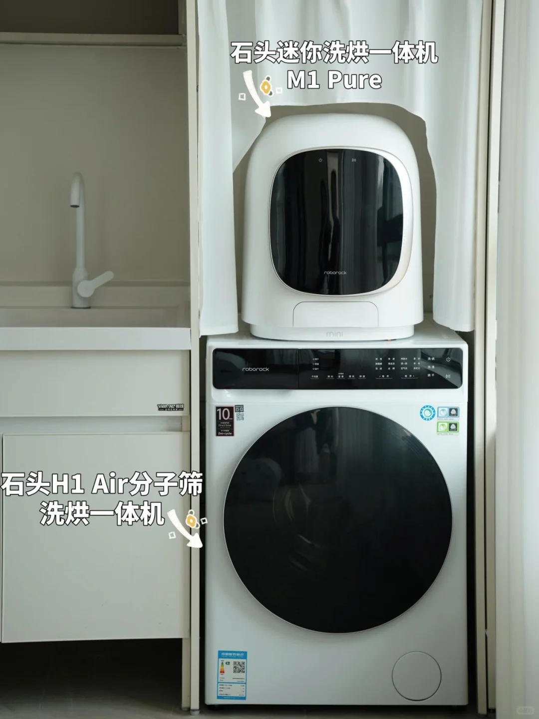 除了阳台的这款洗烘一体机之外,我还配了他们家的石头迷你洗烘一体机M1 Pure,这款有母婴级家电认证,用来洗孩子的衣服和我们的贴身衣物还是很合适的,各种特殊污渍都可以洗的很干净,还有uvc紫外线除菌和高温除菌设计,不用担心细菌滋生,穿着衣服发痒!里面的洗衣液还可以自动投放,不需要自己控制比例,很省心~容量也挺大的,有1 kg洗+0.5kg烘的黄金容量,像瑜伽服,运动衣,睡衣什么的完全没问题,又有高端滚筒立体暖烘,一边翻转,一边烘干,烘干效率高,不怕梅雨天衣服洗不干!