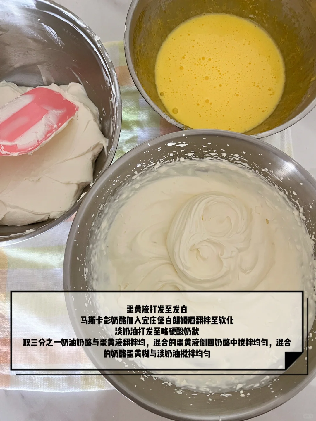⑦混合的奶酪蛋黄糊与淡奶油搅拌均匀