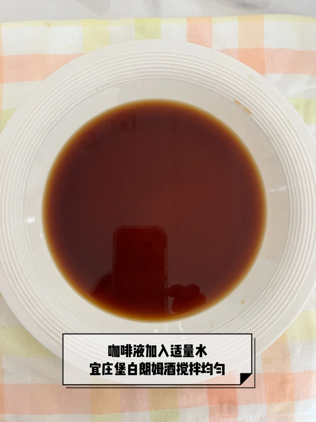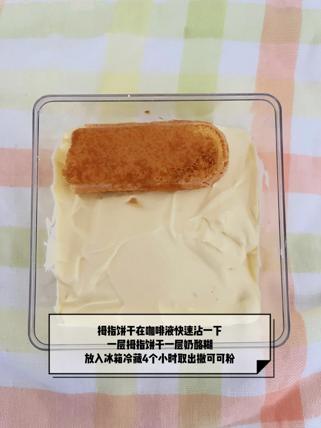 ⑧拇指饼干蘸取咖啡液一层饼干一层奶酪糊