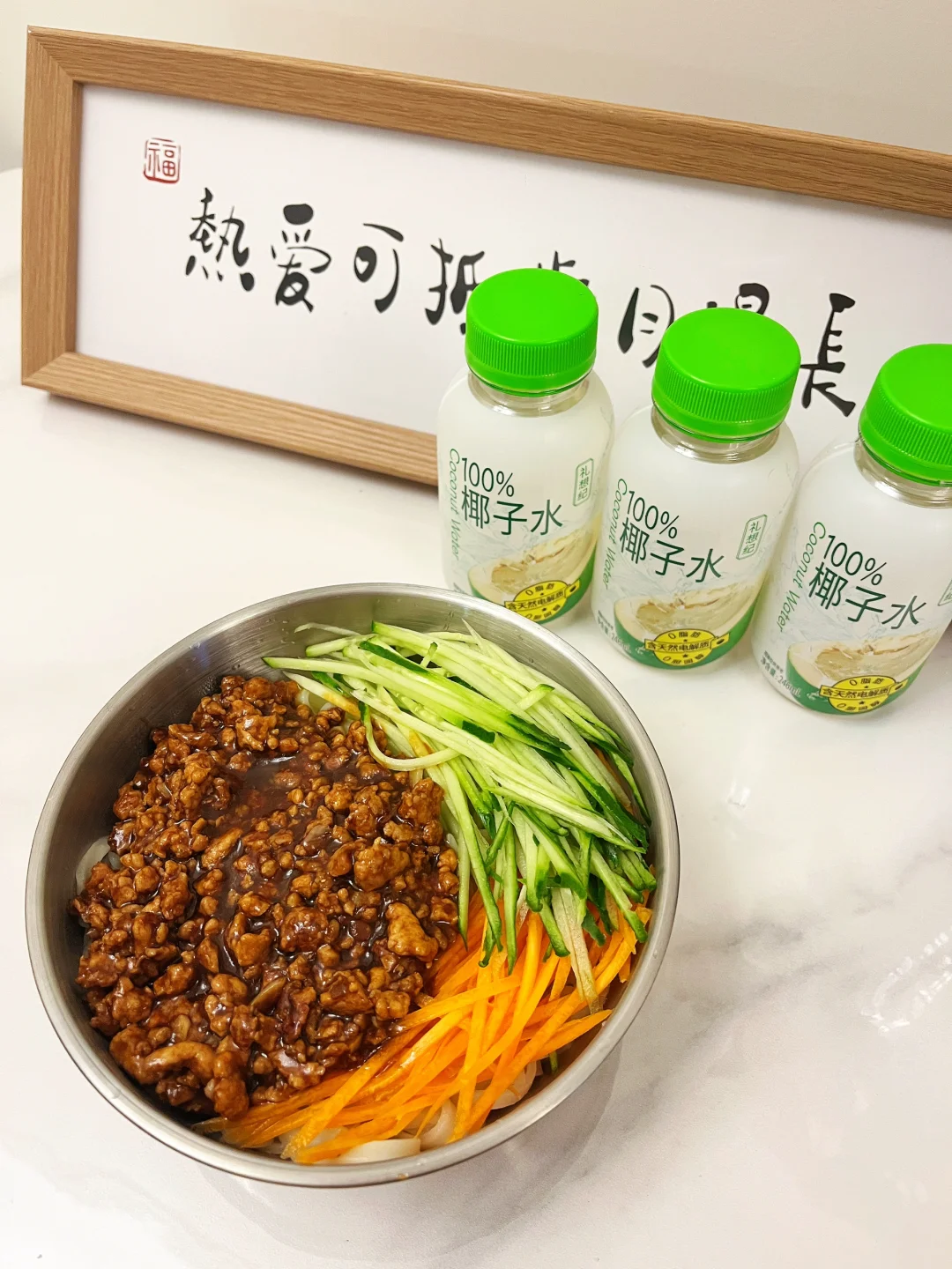 冰冰凉凉的椰子水搭配酱香浓郁的炸酱面[色色R][色色R] 夏天一整个幸福感拉满[哇R][哇R] 姐妹们没有胃口的时候一定要吃这个[赞R][赞R] 简单方便巨巨巨好吃碳水脑袋最爱[哇R][哇R] 椰子控的福音一定是礼想纪100%鲜椰子水,配料表不添加一滴水,巨巨巨好喝,椰香浓郁,入口甜甜的,夏日冰箱必备!!🥥🥥🥥