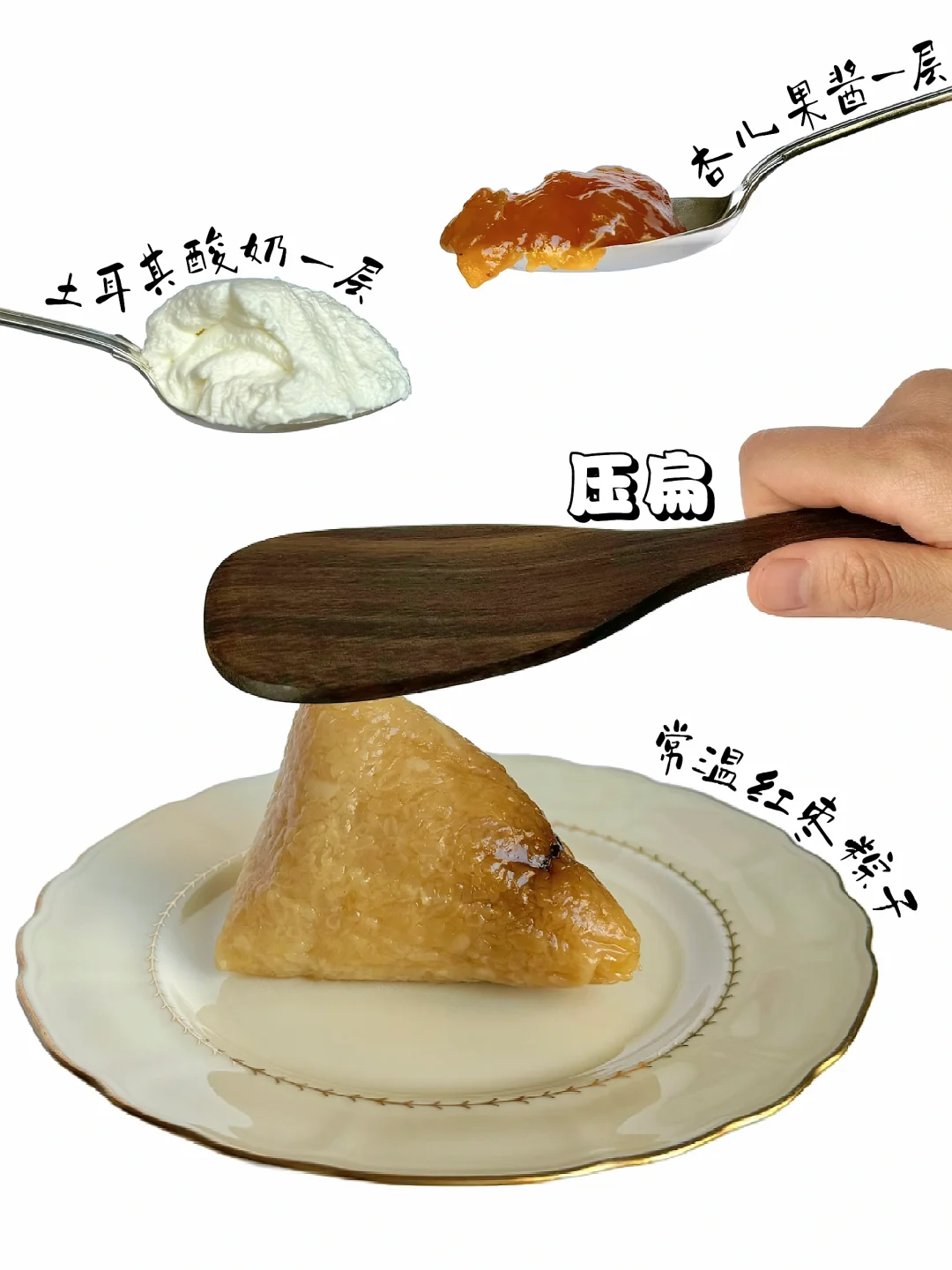 粽子搭配奶香浓郁的酸奶和清新甜美的杏儿果酱 吃起来软糯香甜冰冰凉凉的 简直太适合夏天啦[赞R][赞R] 感觉我前几十年的粽子都白吃了! 👉Tips 土耳其酸奶稍微多放些口感🉑更丝滑 杏儿果酱的量🉑根据个人口味添加 铲子蘸水后再压粽子🉑防止粽子粘在铲子上